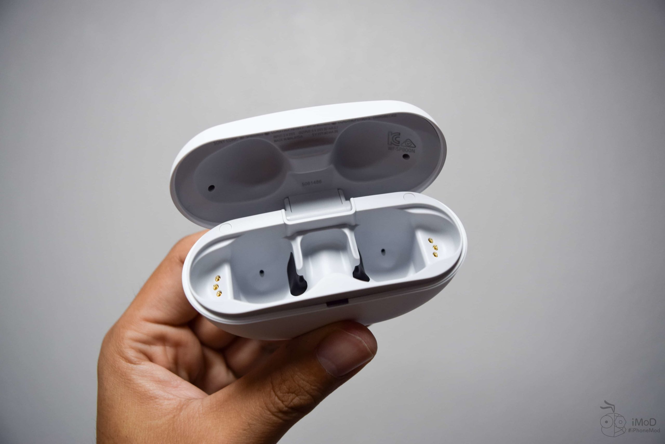 สำหรับตัวเคสชาร์จนั้นมีขนาดค่อนข้างใหญ่ แต่ก็มีน้ำหนักไม่มาก ผิวสัมผัสเป็นแบบด้านเหมือนกัน ที่ด้านบนเคสชาร์จมีโลโก้ SONY และหน้าเคสมีไฟสถานะบอกอยู่