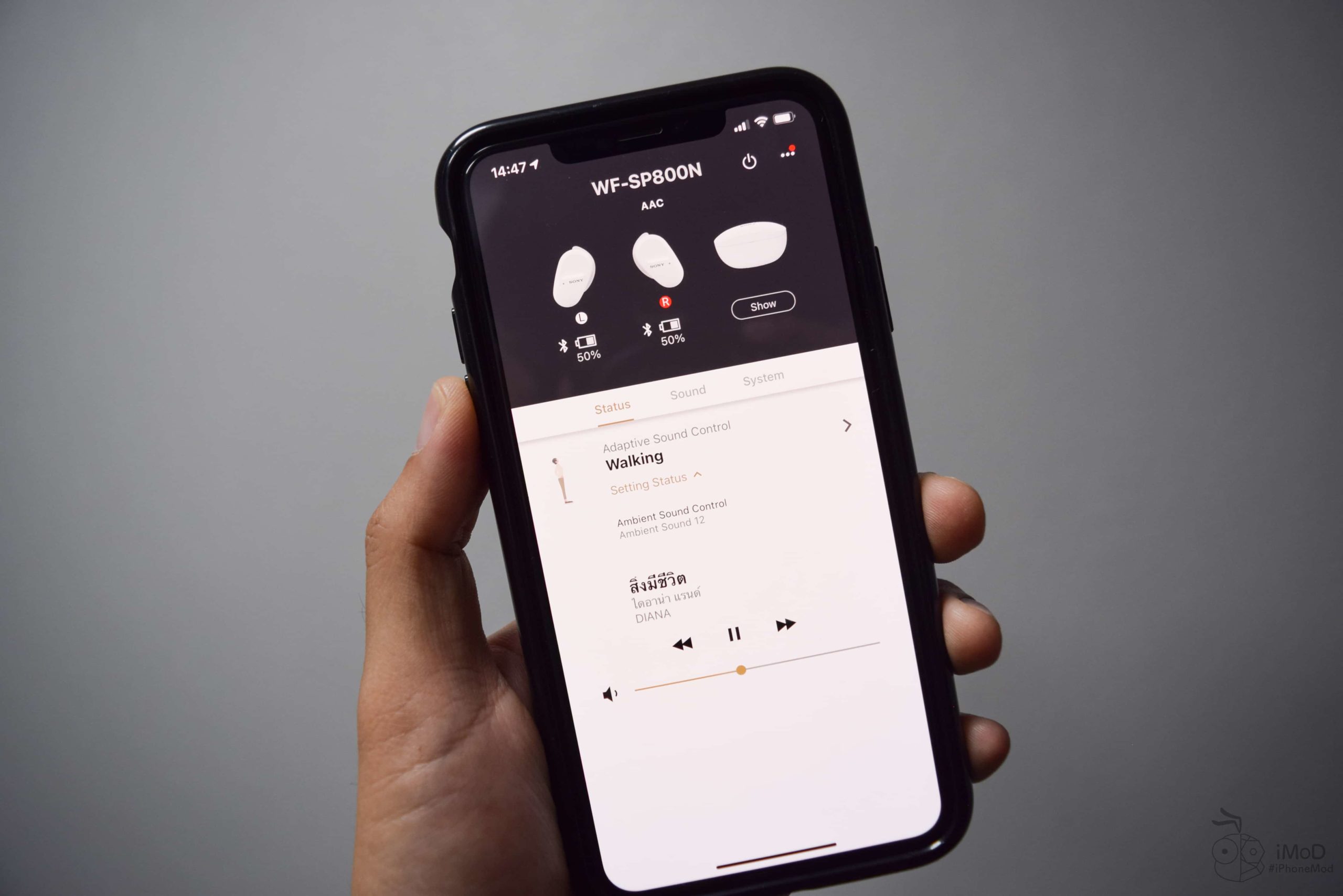 หูฟัง Sony WF-SP800N มีฟีเจอร์ฟังเสียงจากรอบข้าง (Ambient Sound) เช่นกัน โดยผู้เขียนจะเปิดโหมดนี้ระหว่างการออกกำลังกาย เพื่อความปลอดภัยนั่นเอง