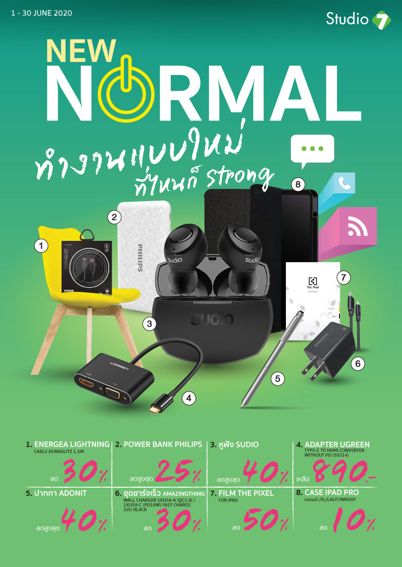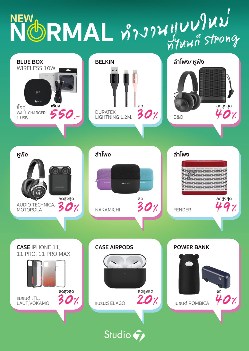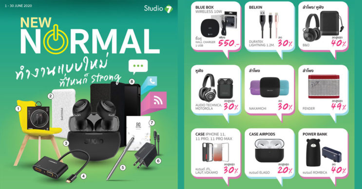 ในสถานการณ์ที่ต้องใช้ชีวิตแบบ New Normal, Studio 7 จัดโปรโมชั่น “New Normal ทำงานที่ไหนก็ Strong” อุปกรณ์เสริมลดสูงสุด 50% ที่ Studio 7 วันนี้ – 30 มิ.ย. 63