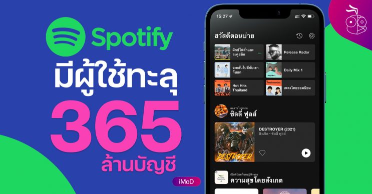 Spotify ประกาศผลประกอบการไตรมาส 2 ปี 2021 เผยว่า Spotify (แอปบริการสตรีมเพลง) มีผู้ใช้ต่อเดือนทะลุ 365 ล้านบัญชีแล้ว โดย 165 ล้านบัญชีเป็นผู้ใช้แบบจ่ายเงิน เพิ่มขึ้นจากเดิม 20% แบบปีต่อปี