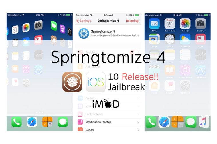ถือว่าไม่ได้ปล่อยให้รอนานสำหรับ Tweak Springtomize 4 ที่ปล่อยให้ใช้งานแล้วใน iOS 10 Jailbreak