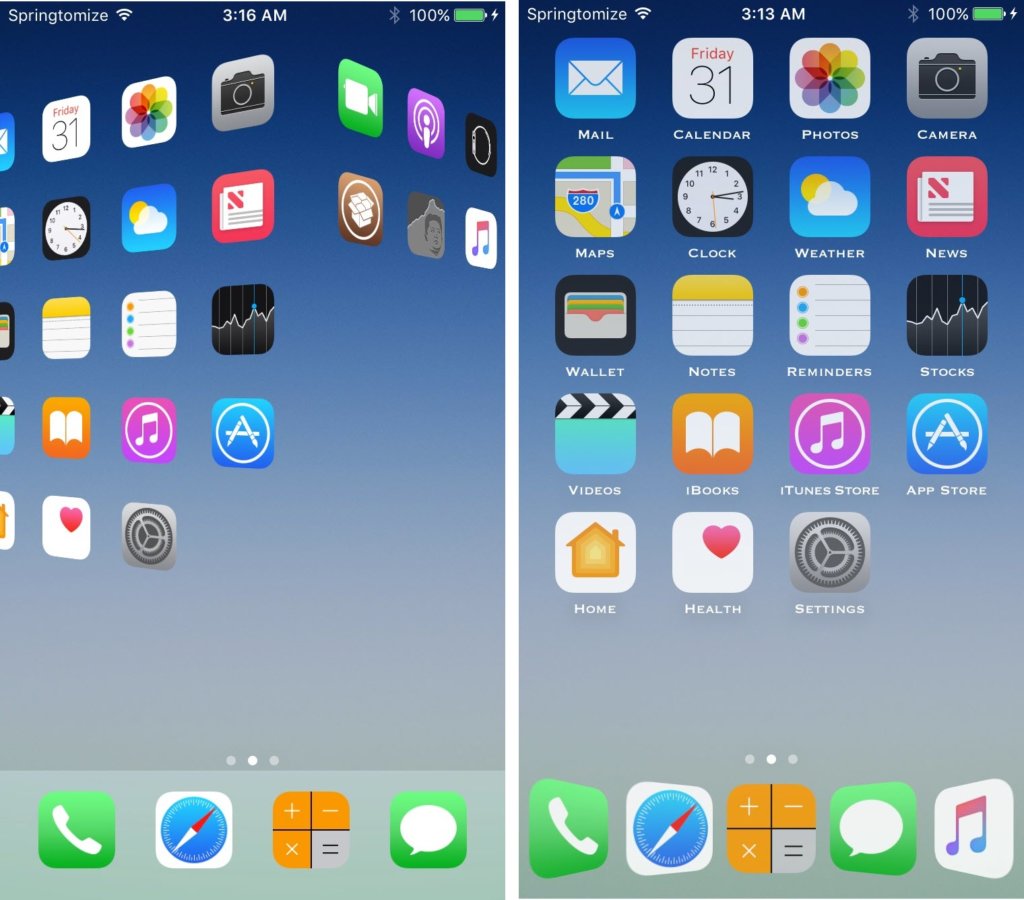 สำหรับ Springtomize 4 มี Option ปรับแต่ง iOS 10 Jailbreak มากกว่า 100 แบบ สามารถปรับแต่งจำนวนและขนาดไอคอนที่หน้า Home, รูปแบบการเคลื่อนไหว, รูปแบบฟอนต์และอื่นๆอีกมากมาย