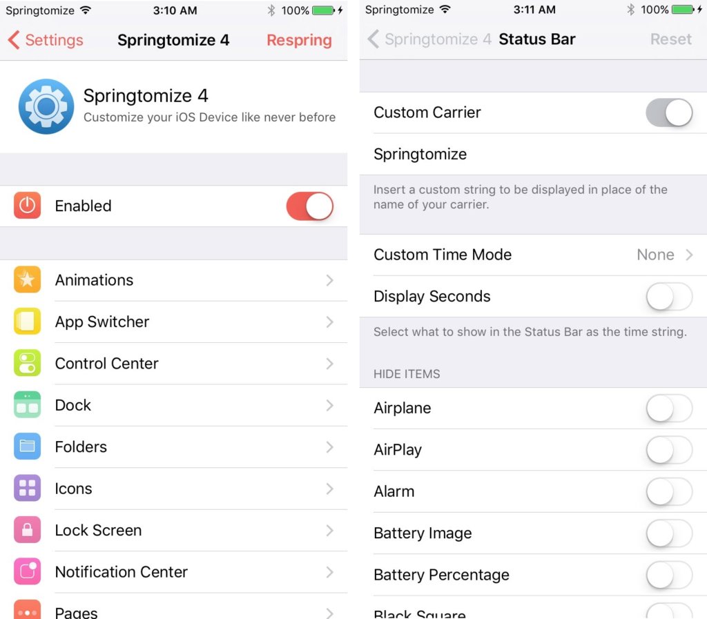 Springtomize 4 เปิดให้ดาวน์โหลดใช้งานแล้วผ่าน Cydia Store โดยเปิดขายในราคา 3.99 ดอลล่าร์