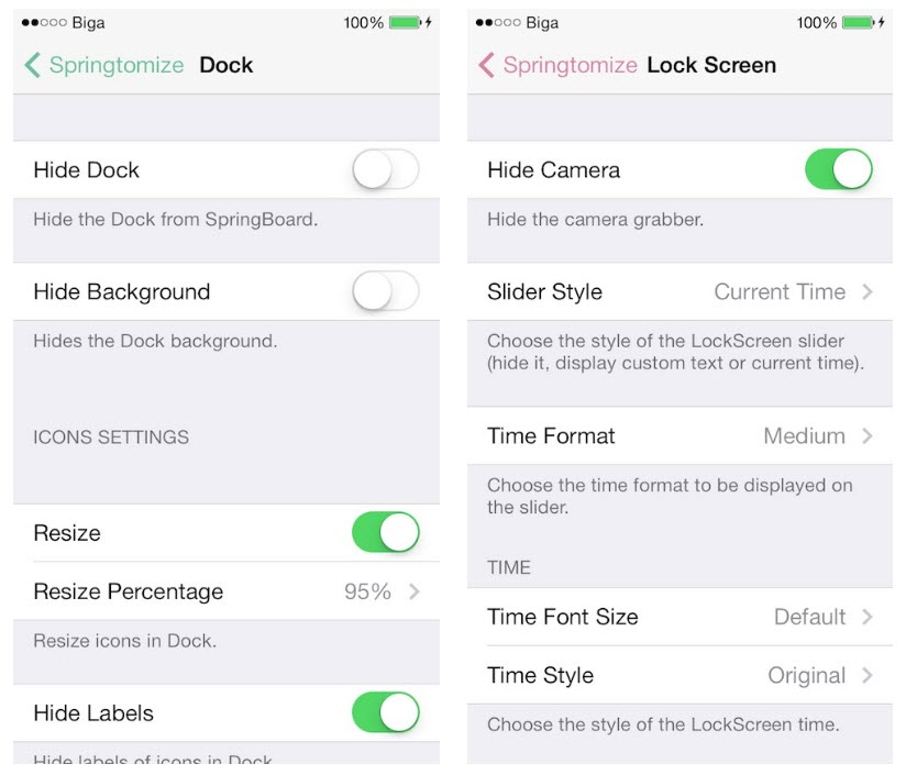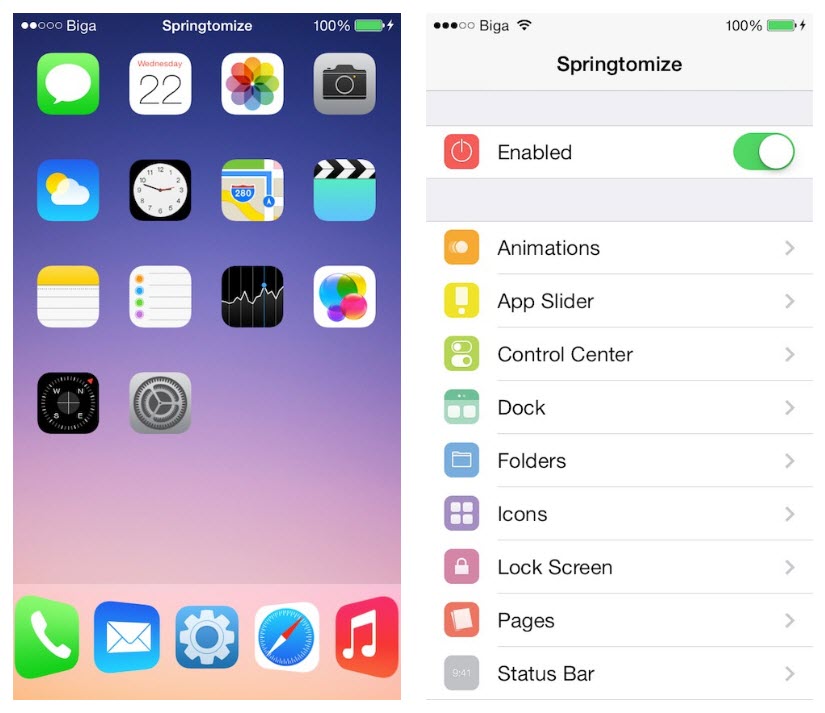สำหรับ Tweak Springtomize 3 เคยเปิดให้สาย Jailbreak ใช้งานกันเมื่อตอน iOS 7 โดยตอนนั้น Springtomize 3 มีทั้งแบบฟรีและแบบจ่ายเงิน คุณสมบัติหลักของ Tweak นี้คือสามารถปรับแต่ง iOS ได้ เช่น ซ่อนชื่อแอป, ซ่อนพื้นหลัง, เปลี่ยนรูปแบบการสไลท์, เปลี่ยนฟอนต์, เปลี่ยนไอคอน และอื่นๆอีกมากมาย
