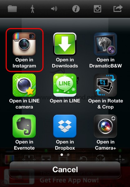 เมื่อเรากดส่งไปยัง Instagram แล้ว แอปจะให้เราเลือกความละเอียดของภาพ อยากได้ภาพคมๆก็เลือกเยอะๆครับ > ต่อมาเราก็เลือกส่งไปยังแอป Instagram จะเห็นได้ว่าตรงนี้เราสามารถส่งไปยังแอปอื่นๆได้ด้วย