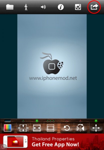 เมื่อเรา Crop ย่อ เปลี่ยนสีพื้นหลัง เสร็จเรียบร้อยแล้ว เราก็กดส่งภาพไปบันทึก หรือส่งต่อไปยัง Instagram ได้เลยที่ปุ่มมุมขวาบน