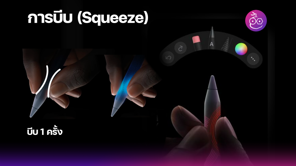 เพียงเท่านี้เราก็สามารถใช้งานฟีเจอร์ การบีบ (Squeeze) บน Apple Pencil Pro ได้แล้ว โดย iPad รุ่นที่สามารถใช้งานร่วมกับ Apple Pencil Pro ได้แก่ iPad Pro รุ่น 11” และ 13” (ชิป M4) และ iPad Air รุ่น 11” และ 13” (ชิป M2) รุ่นใหม่ ที่มาพร้อมกับฟีเจอร์เด่น ๆ เลยคือ บีบ สั่น หมุน สามารถใช้งานกับ iPadOS 17.5 หรือใหม่กว่า