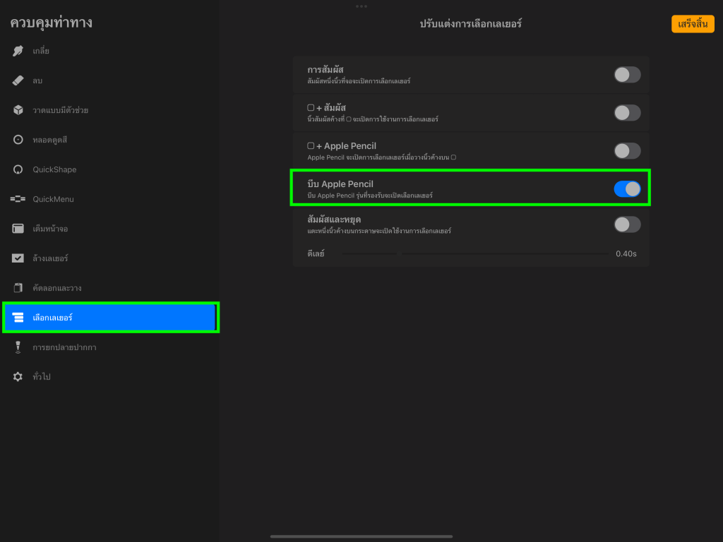 ขั้นตอนการตั้งค่าการบีบ Apple Pencil Pro ใน Procreate