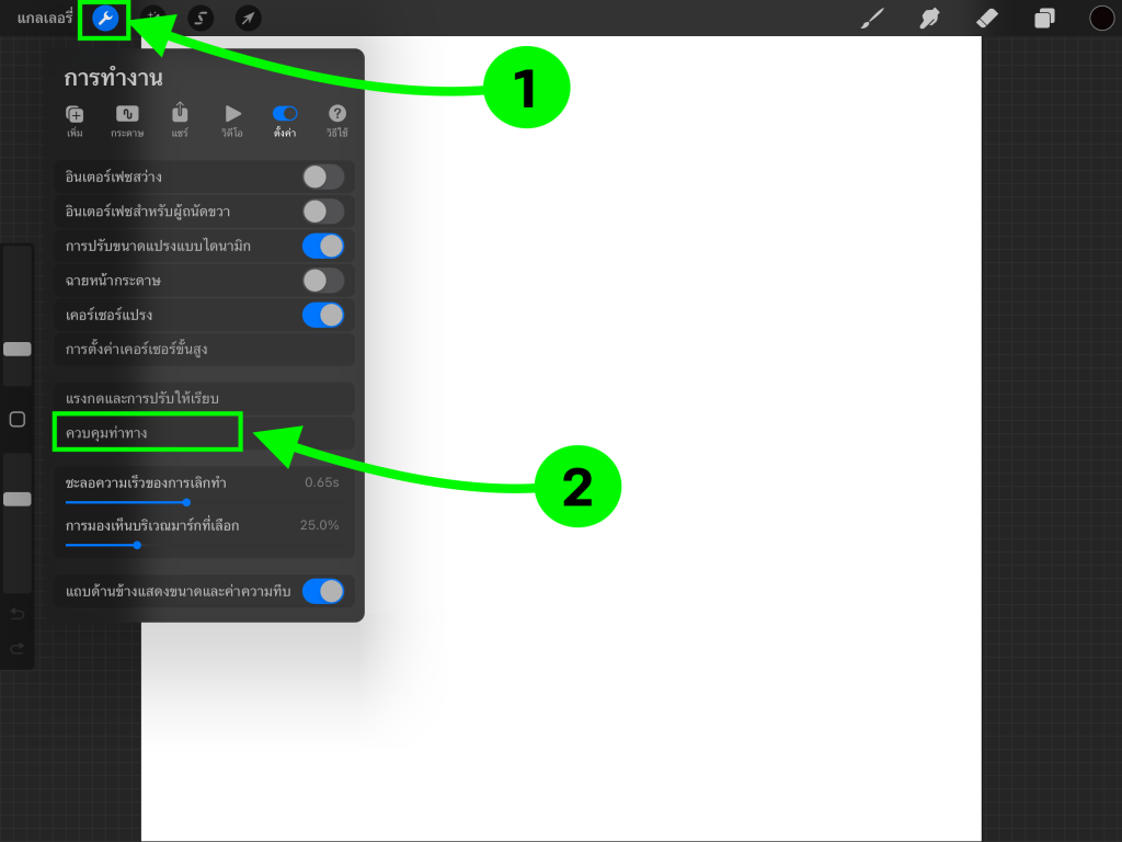 กดไปที่ เครื่องหมาย “ประเเจ” > กดไปที่ “ควบคุมท่าทาง”