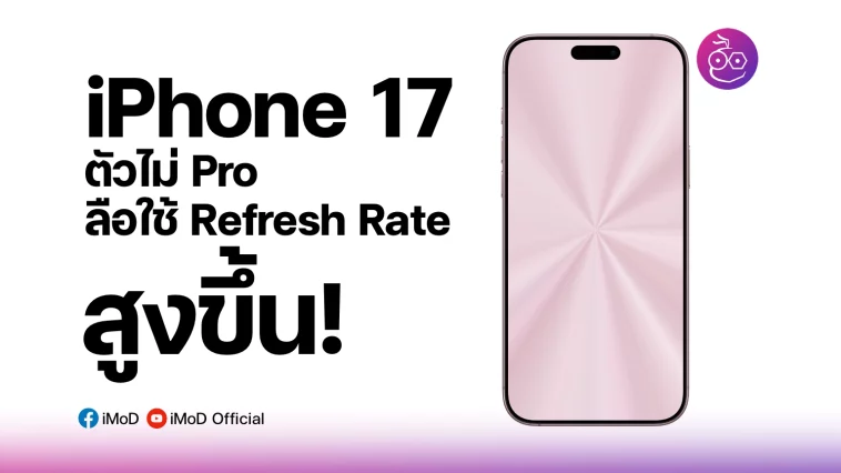 มีรายงานระบุว่า iPhone 17 ตัวธรรมดาอาจมี Refresh Rate ที่สูงขึ้น คาดว่าอาจนำเทคโนโลยี ProMotion 120Hz ของรุ่น Pro มาใส่ในตัวธรรมดา