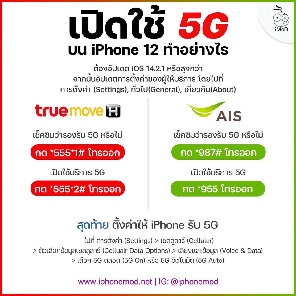 เปิดใช้งาน 5G บน iPhone 12 สำหรับเครือข่ายในประเทศไทย