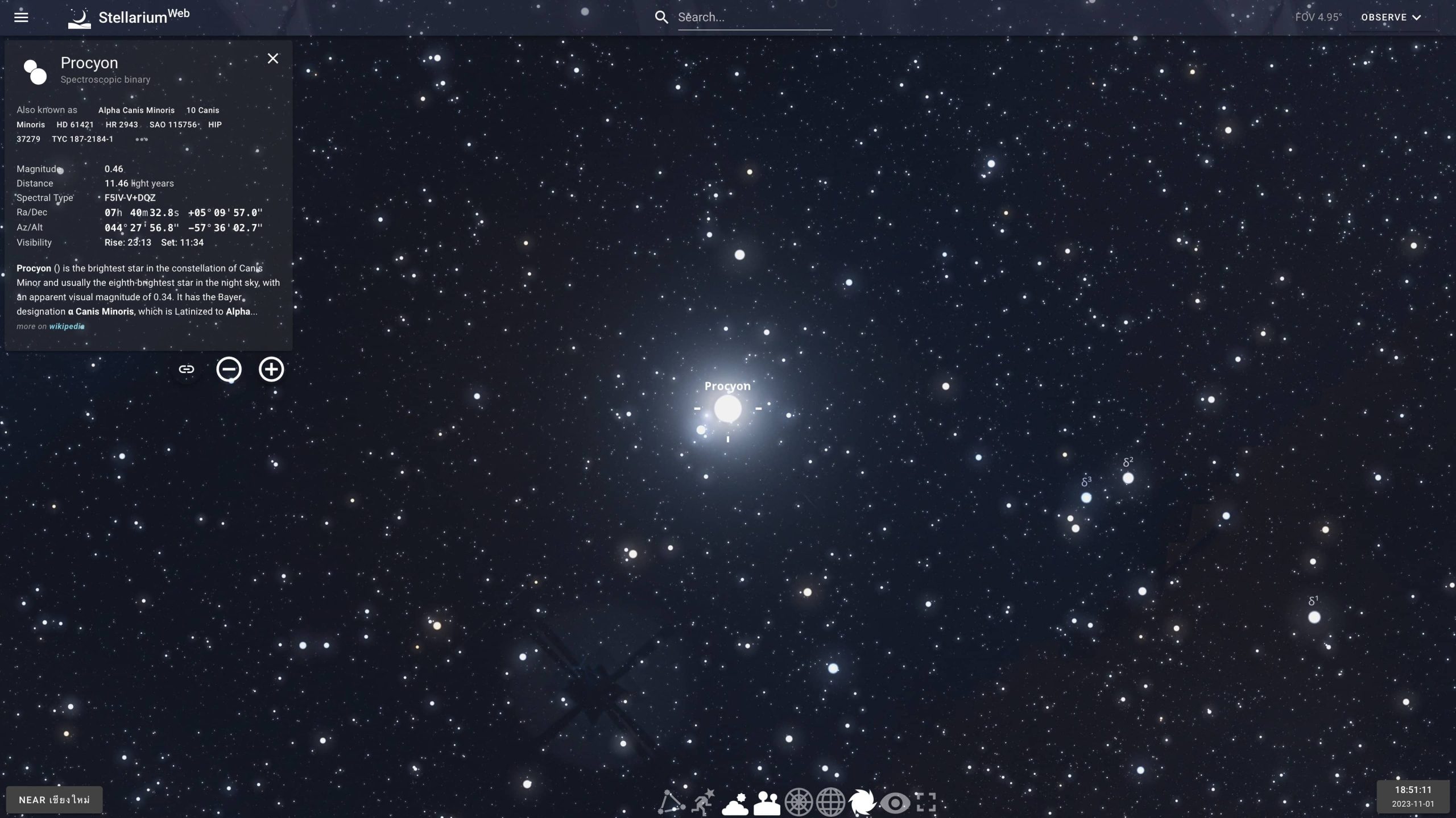 มาที่หน้าเว็บ Stellarium จะมีดาวให้เลือกดูเยอะมาก