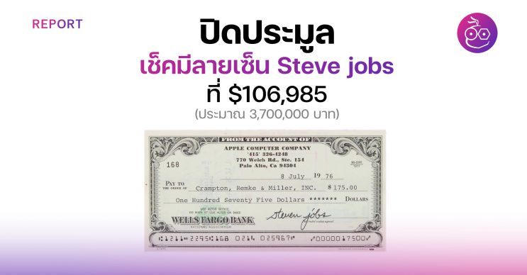 ปิดประมูล! เช็คมีลายเซ็น Steve Jobs ราคาปิดประมูล 3,700,000 บาท