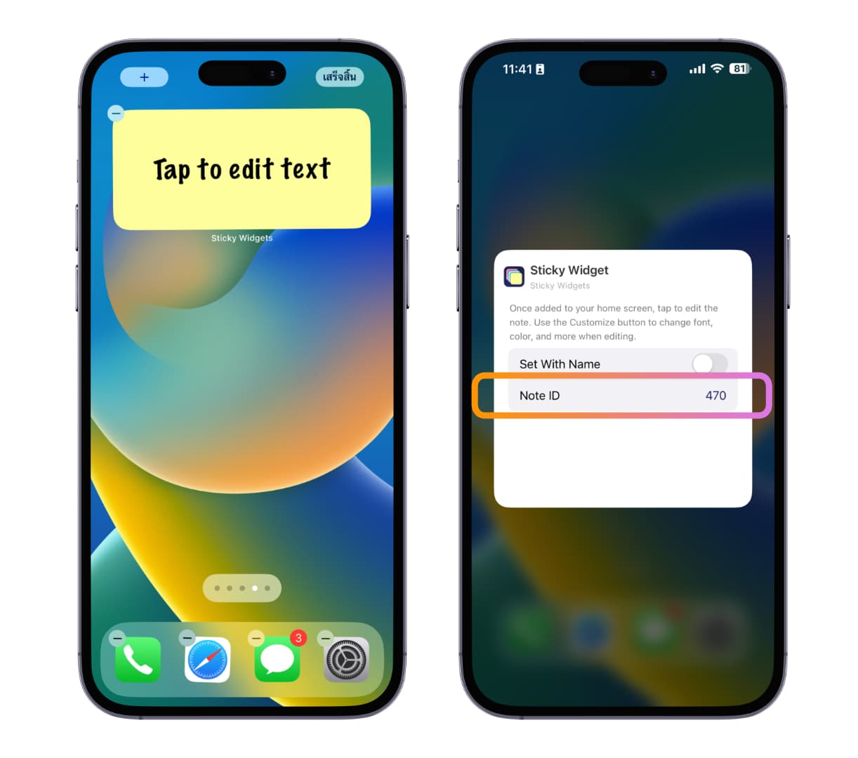 ดาวน์โหลดแอป : https://apps.apple.com/th/app/sticky-widgets/id1533254320?l=th
