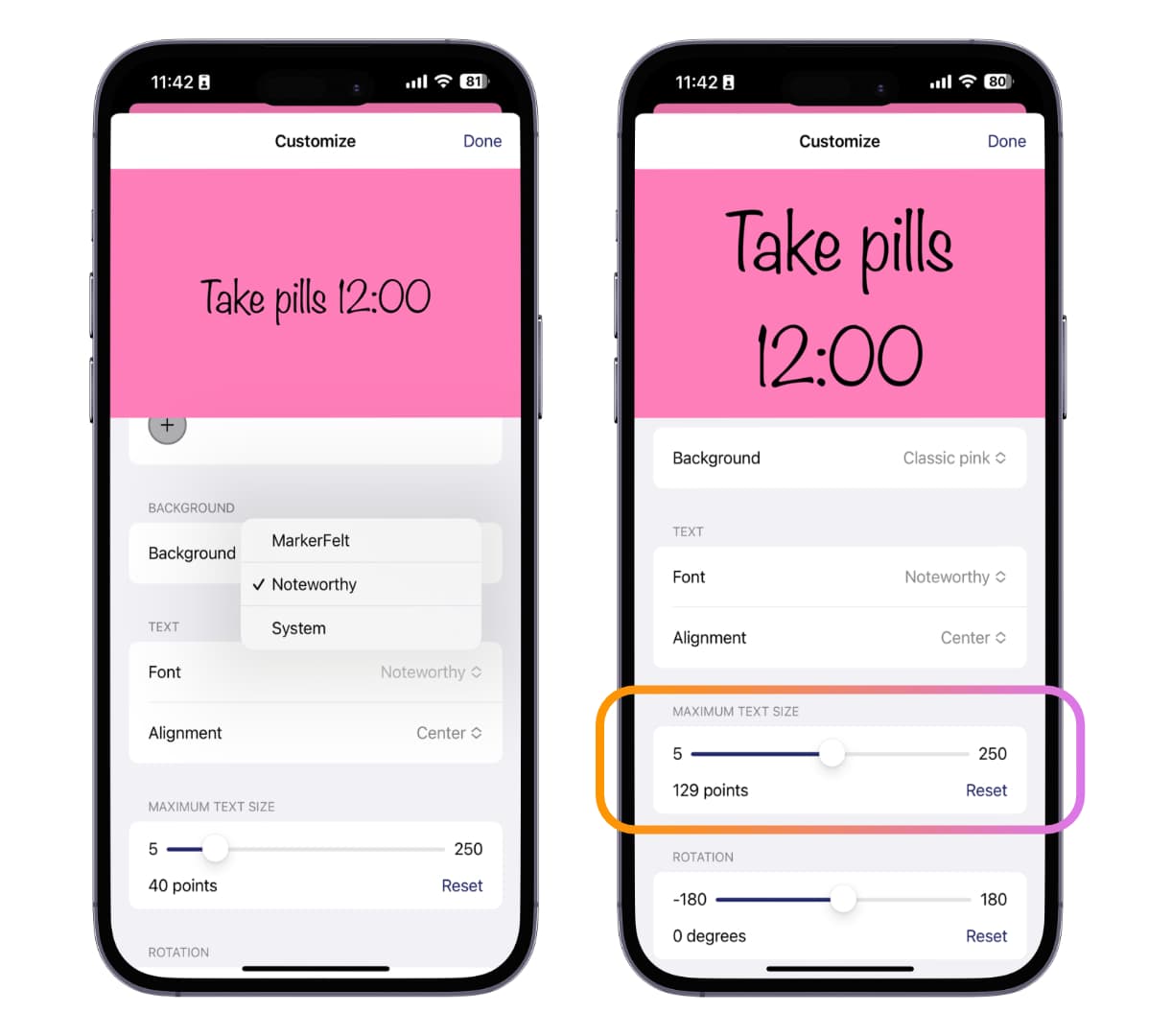 วิดเจ็ตของแอปนี้จะมี 3 ขนาดให้เลือก คือขนาดเล็ก กลาง และใหญ่