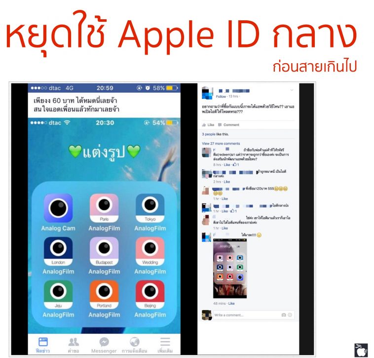 เมื่อปี 2012 ผมเคยเขียน บทความพิเศษ – Apple ID สาธารณะ ดาบ 2 คมที่ควรระวัง ให้อ่านกันไปแล้วแต่คาดว่าหลายคนคงยังไม่ได้อ่านเพราะมันนานมากๆ แล้ว วันนี้อดใจไม่ได้ที่จะเขียนถึงมันอีกครั้งเพราะดู Timeline ใน Facebook แล้วเจอเยอะซะเหลือเกินพวกที่หากินกับ Apple ID กลาง เนี่ย รู้ทั้งรู้ว่าผิดและมีความเสี่ยงแต่ก็ยังเลือกที่จะทำหวังเพื่อเงินเข้าตัวเองเท่านั้น ส่วนคนที่จะซวยก็คือ “พวกที่เอา ID กลางไปใช้โดยไม่รู้ว่ามันมีผลกระทบ” นั่นแหละที่น่าเป็นห่วง