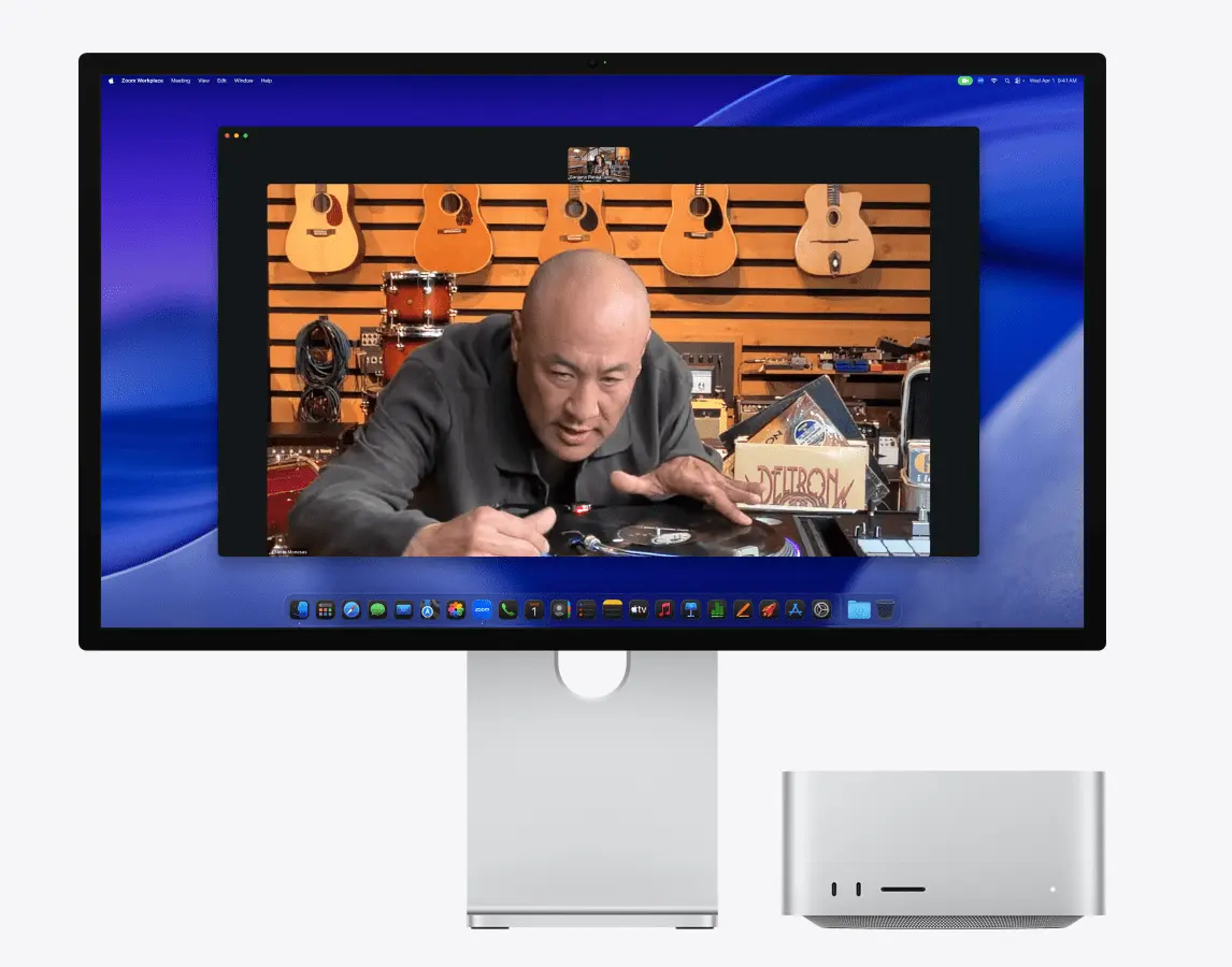 Studio Display มีกล้อง Center Stage 12MP รองรับมุมมองด้านหน้าโต๊ะ ทำให้การวิดีโอคอลมีคุณภาพดียิ่งขึ้น