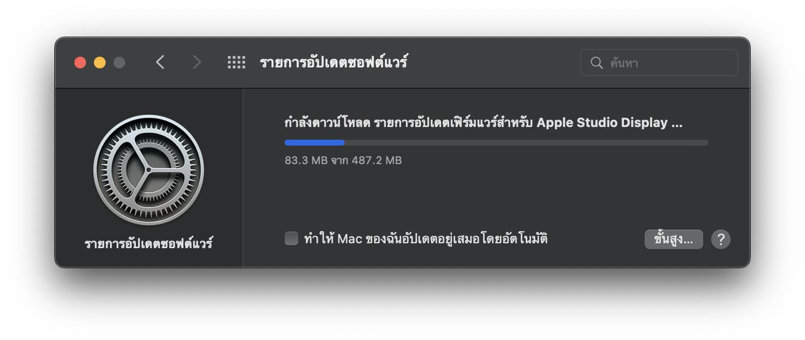 ผู้ใช้จอ Studio Display ให้เชื่อมต่อหน้าจอเข้ากับ Mac แล้วเข้าไปที่ System Preferences > Software Update จะมีหน้าต่าง Studio Display Firmware ให้กดอัปเดต