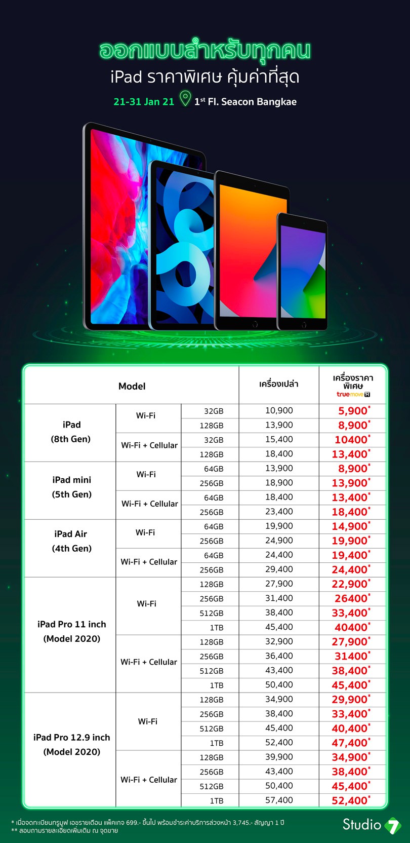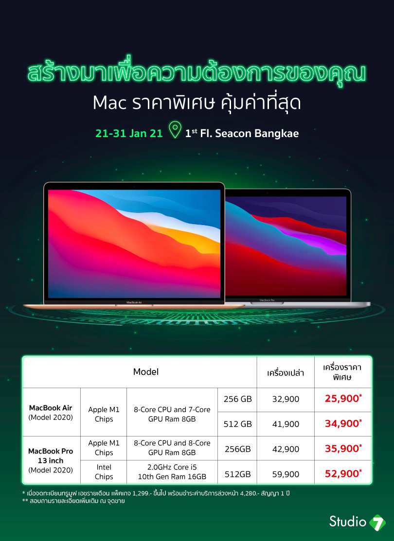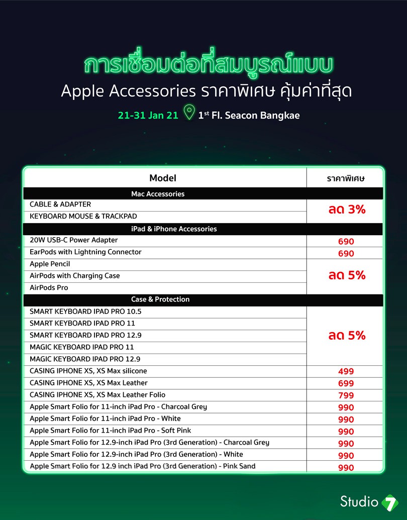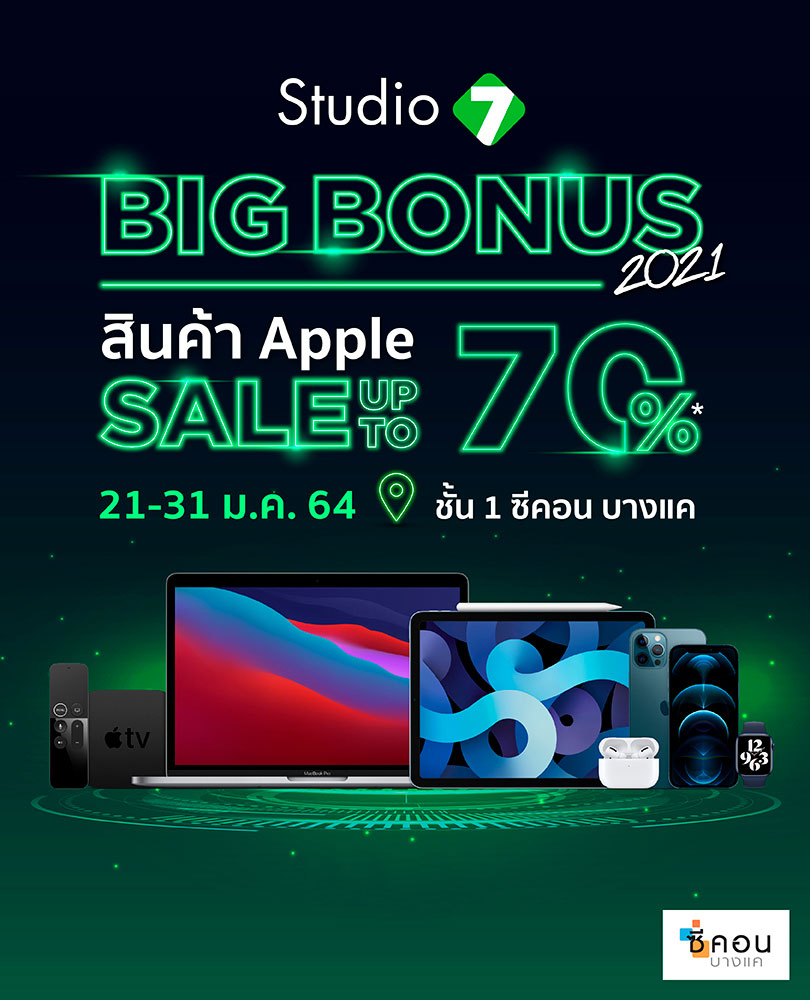 Studio 7 จัดงาน “Studio 7 BIG BONUS 2021” สินค้า Apple ลดสูงสุด 70% วันนี้ – 31 ม.ค. 64 ที่ชั้น 1 ซีคอน บางแค