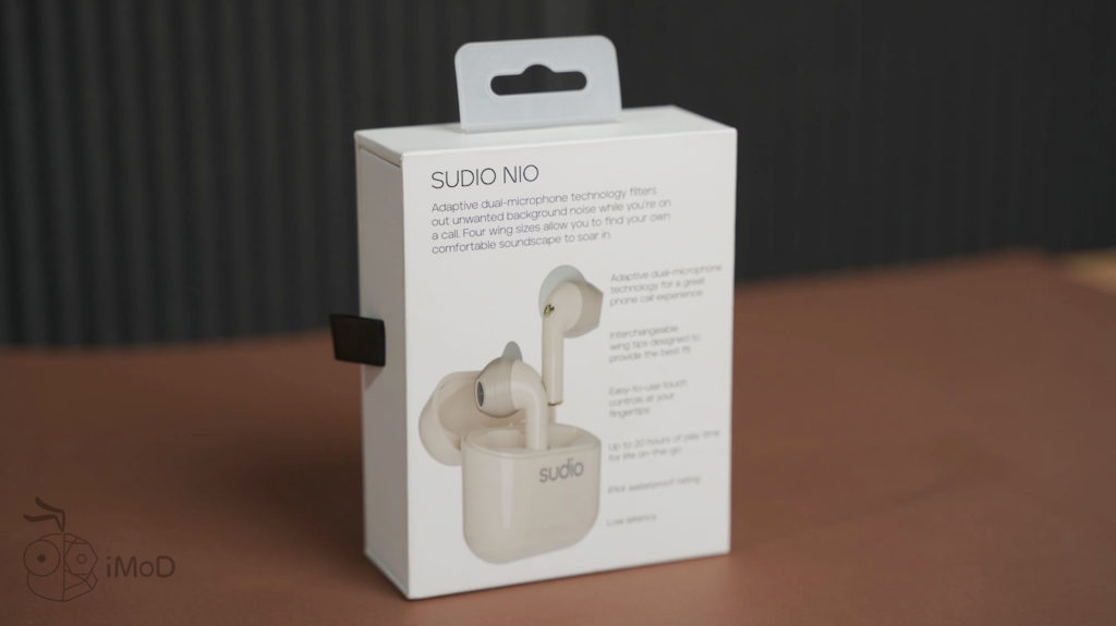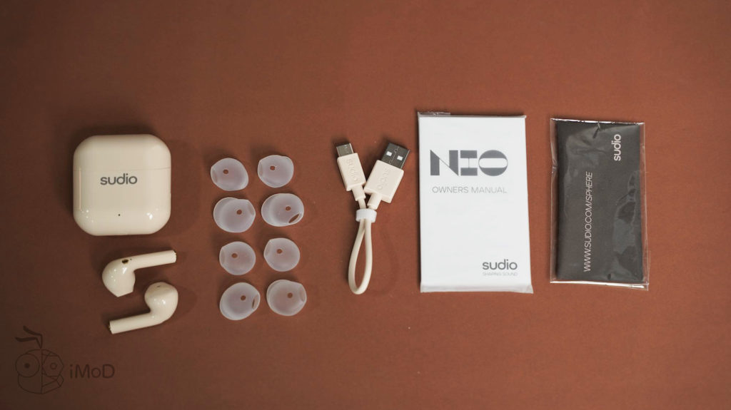 หูฟัง Sudio Nio เป็นหูฟังรูปแบบ EarBuds มีลักษณะคล้ายกับ AirPods ของ Apple มาพร้อมจุกยางซิลิโคนที่ครอบตรงส่วนของหูฟัง ผู้ใช้สามารถเลือกจุกยางที่มีขนาดพอดีกับใบหู เพื่อให้การสวมใส่แน่นกระชับมากขึ้น