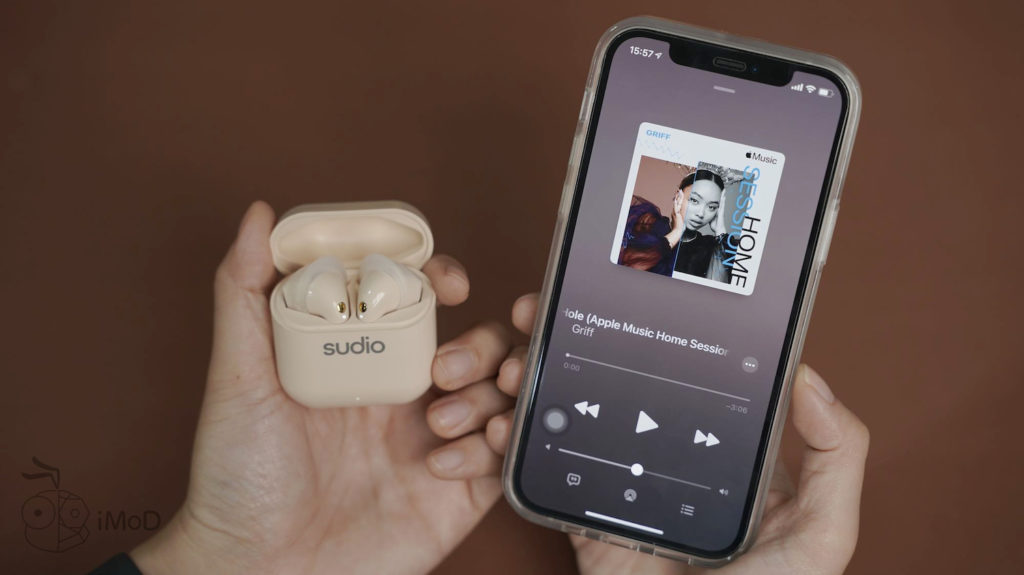 หลังจากที่ได้เชื่อมต่อหูฟัง Sudio Nio กับ iPhone และฟังเพลงผ่านแอป Apple Music พบว่าหูฟังให้เสียงเบสค่อนข้างหนัก เสียงกลางและเสียงแหลมก็ขับได้ดี ไพเราะ แต่บางเพลงที่เบสหนัก ๆ เสียงเบสอาจจะกลบเสียงกลางอยู่บ้าง
