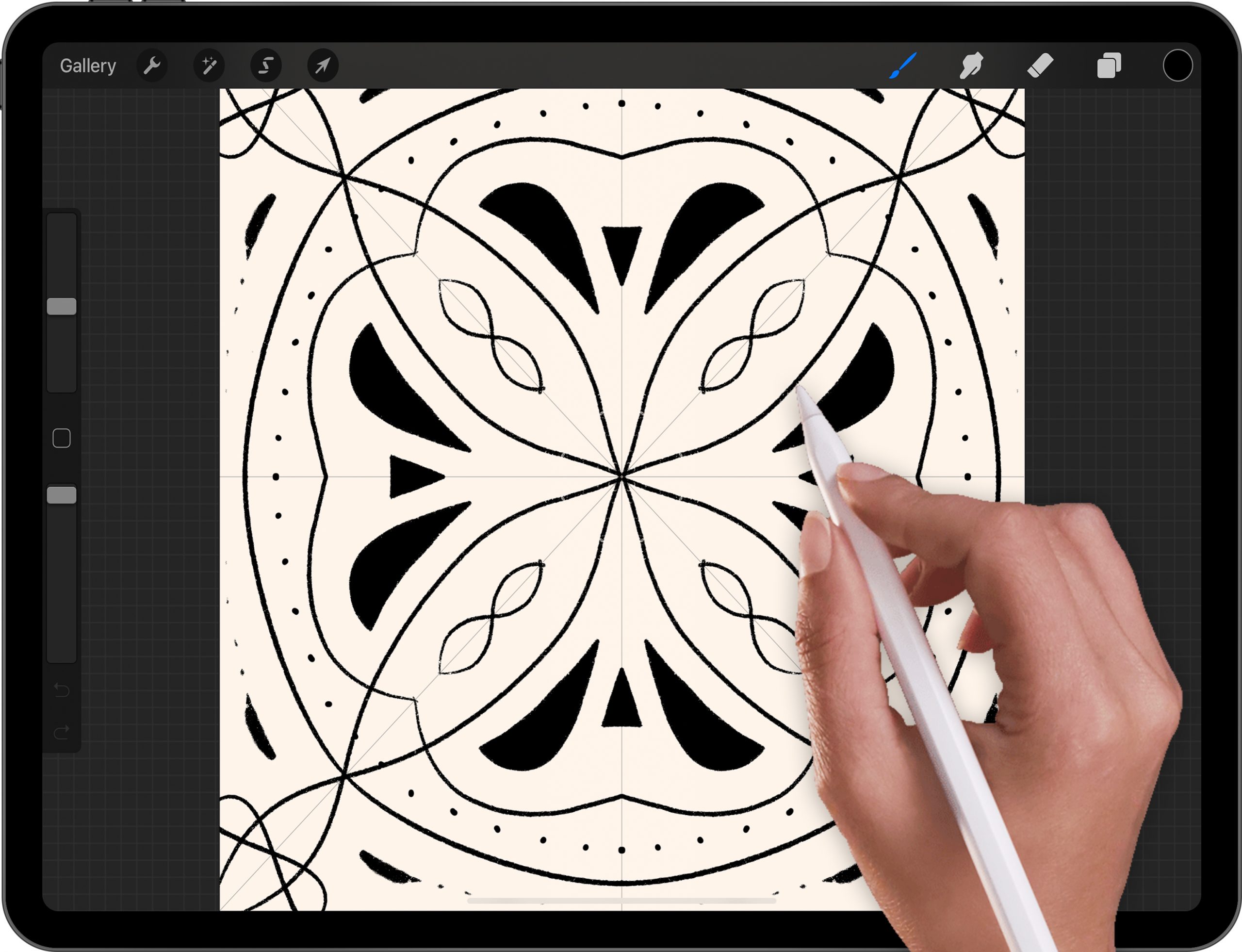 และบางครั้งเวลาที่เราวาดรูปแล้วอยากจะให้รูปวาดของเรานั้นสมมาตรกัน หรือวาดเพียงด้านเดียว ก็สะท้อนกลับเป็น 2 ด้านได้ ซึ่งจะวาดรูปให้เท่ากันเป๊ะ ๆ เนี่ย ค่อนข้างยากเลย แต่รู้หรือไม่ว่า ในแอป Procreate เนี่ย ได้ใส่ตัวช่วยให้เราวาดรูปสมมาตรได้ง่ายไว้ด้วย นั่นก็คือ ฟีเจอร์ Symmetry นั่นเองค่ะ