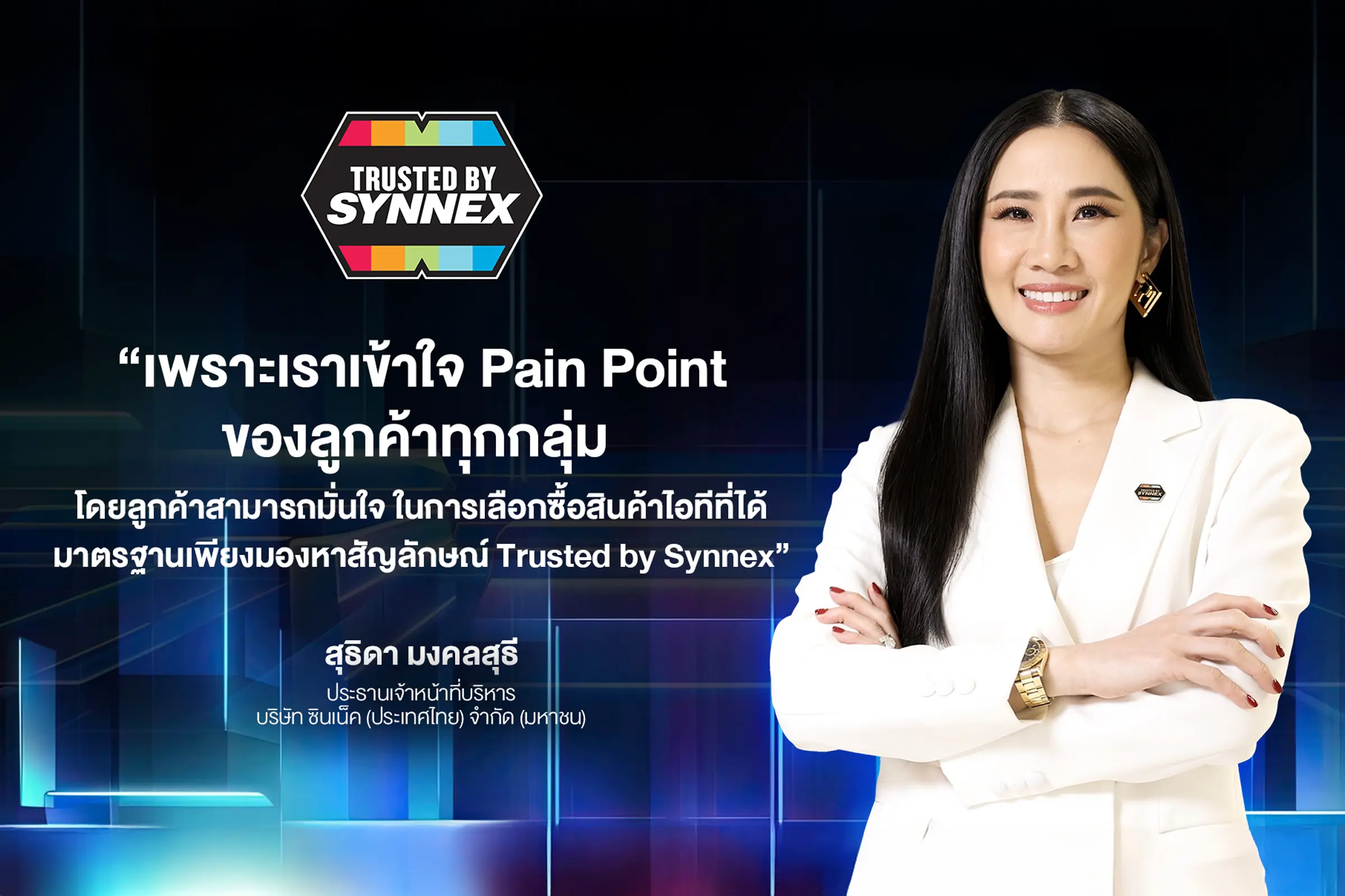 นางสาวสุธิดา มงคลสุธี ประธานเจ้าหน้าที่บริหาร กล่าวว่า “พันธมิตรที่เข้าร่วมงาน Commart Unlimit ครั้งนี้ ล้วนเป็นแบรนด์ชั้นนำที่ได้รับการยอมรับในระดับสากลอย่าง Razer, Western Digital (WD), SanDisk และ Seagate โดยลูกค้าสามารถมั่นใจในการเลือกซื้อสินค้าไอทีที่ได้มาตรฐานเพียงมองหาสัญลักษณ์ ‘Trusted by Synnex’ รับประกันสินค้าของแท้และมีมาตรฐาน พร้อมบริการหลังการขายที่เชื่อถือได้ครอบคลุมทั่วประเทศ”