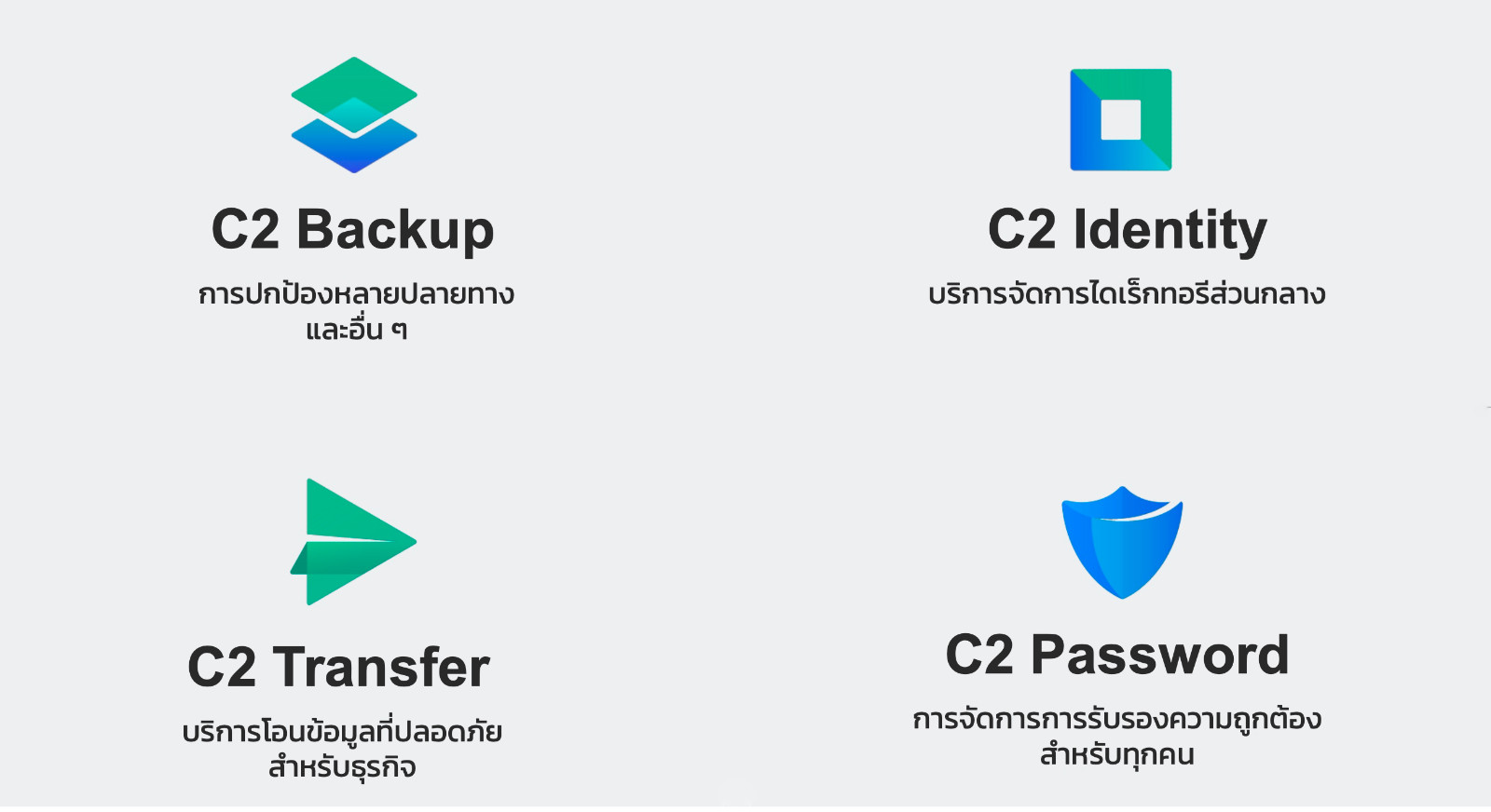 หลังจากนั้น เราจะมีการเปิดตัว C2 Password, C2 Transfer และ C2 Backup ซึ่งเป็นโซลูชันแบบ Standalone เพื่อรับมือกับความต้องการยุคใหม่ในการปกป้องรหัสผ่าน แชร์ไฟล์ที่สำคัญ และสำรองข้อมูลบนทุก Endpoint และบริการคลาวด์ SaaS ทั่วไป