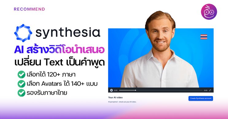 Synthesia.io เป็นเครื่องมือ AI ที่ช่วยสร้างวิดีโอการนำเสนอด้วยการเปลี่ยน Text เป็นคำพูด โดย Generate ออกมาในรูปแบบวิดีโอพร้อม AI Avatars ที่สามารถเลือกเสียงคนพูด เลือกภาษา และเลือก Character ได้ เรียกได้ว่าช่วยประหยัดเวลา ประหยัดทรัพยากรการถ่ายทำ ไม่ต้องใช้ทักษะการตัดต่อวิดีโอก็สามารถครีเอทผลงานออกมาได้ และที่สำคัญคือรองรับภาษาไทยด้วย ลองไปชมกัน
