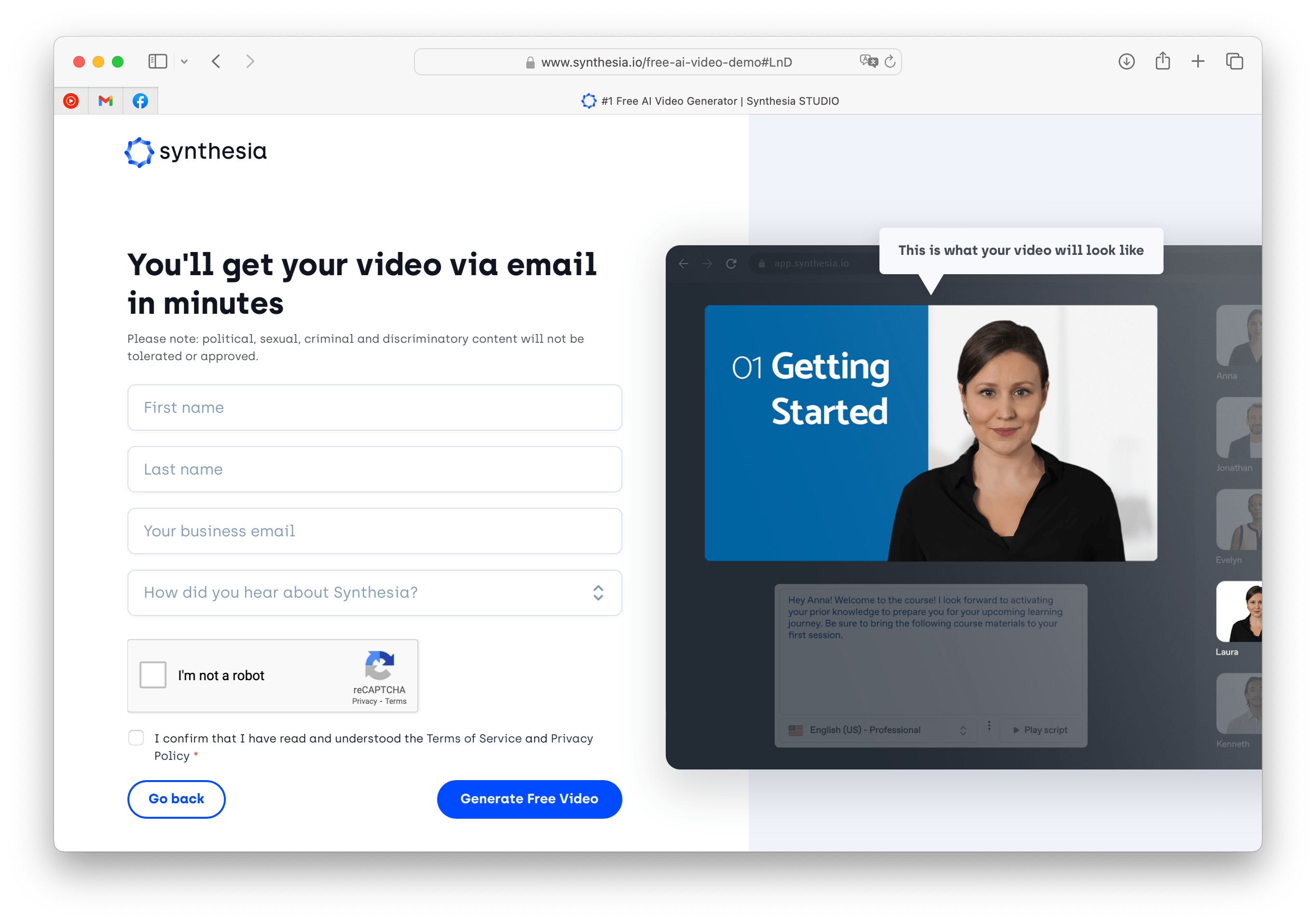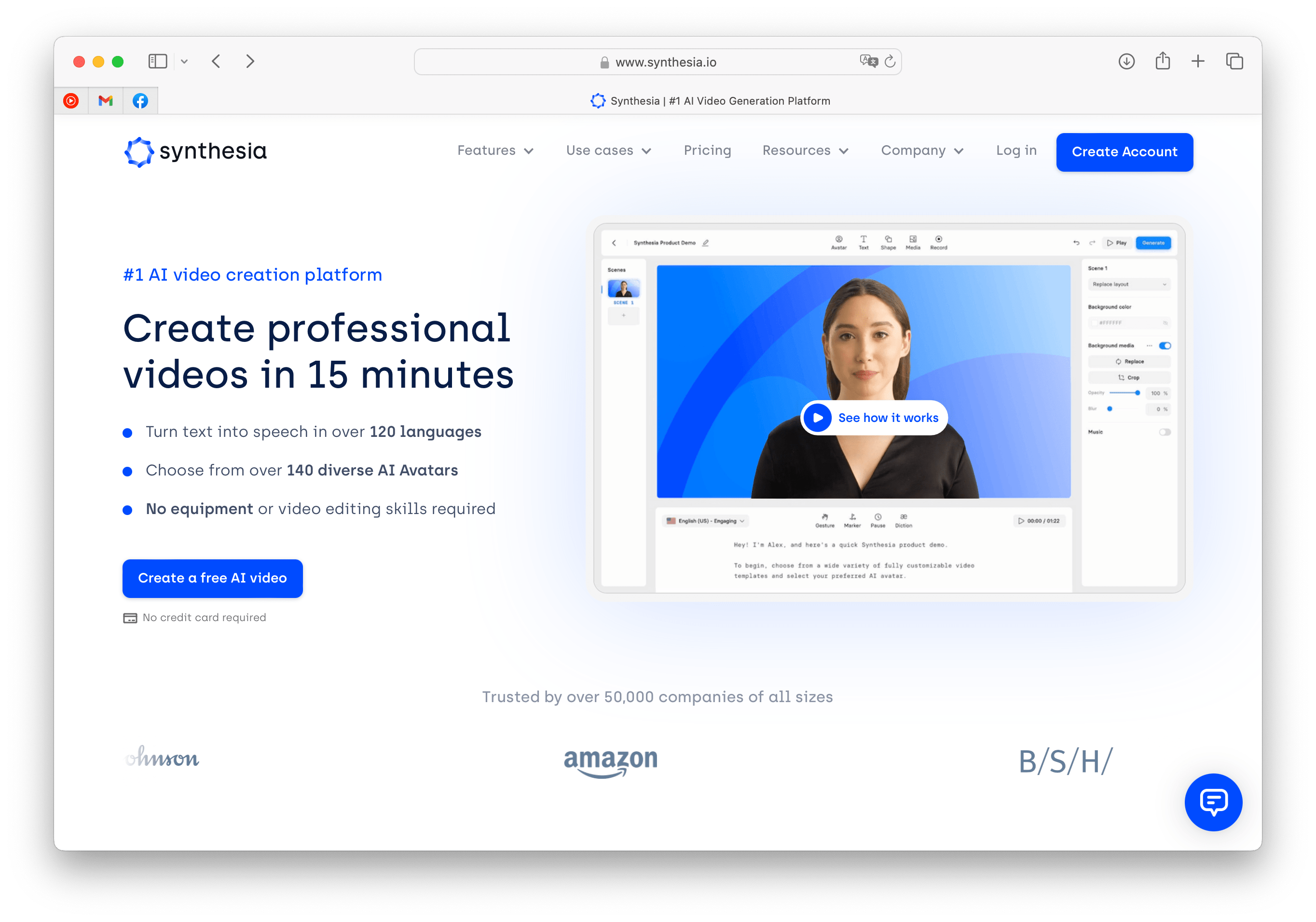 หากใครอยากรู้ว่าเครื่องมือ AI นี้ทำงานอย่างไร สามารถลองเข้าไปสร้าง AI วิดีโอได้เลยที่เว็บไซต์ Synthesia.io จากนั้นคลิกที่ “Create a free video”
