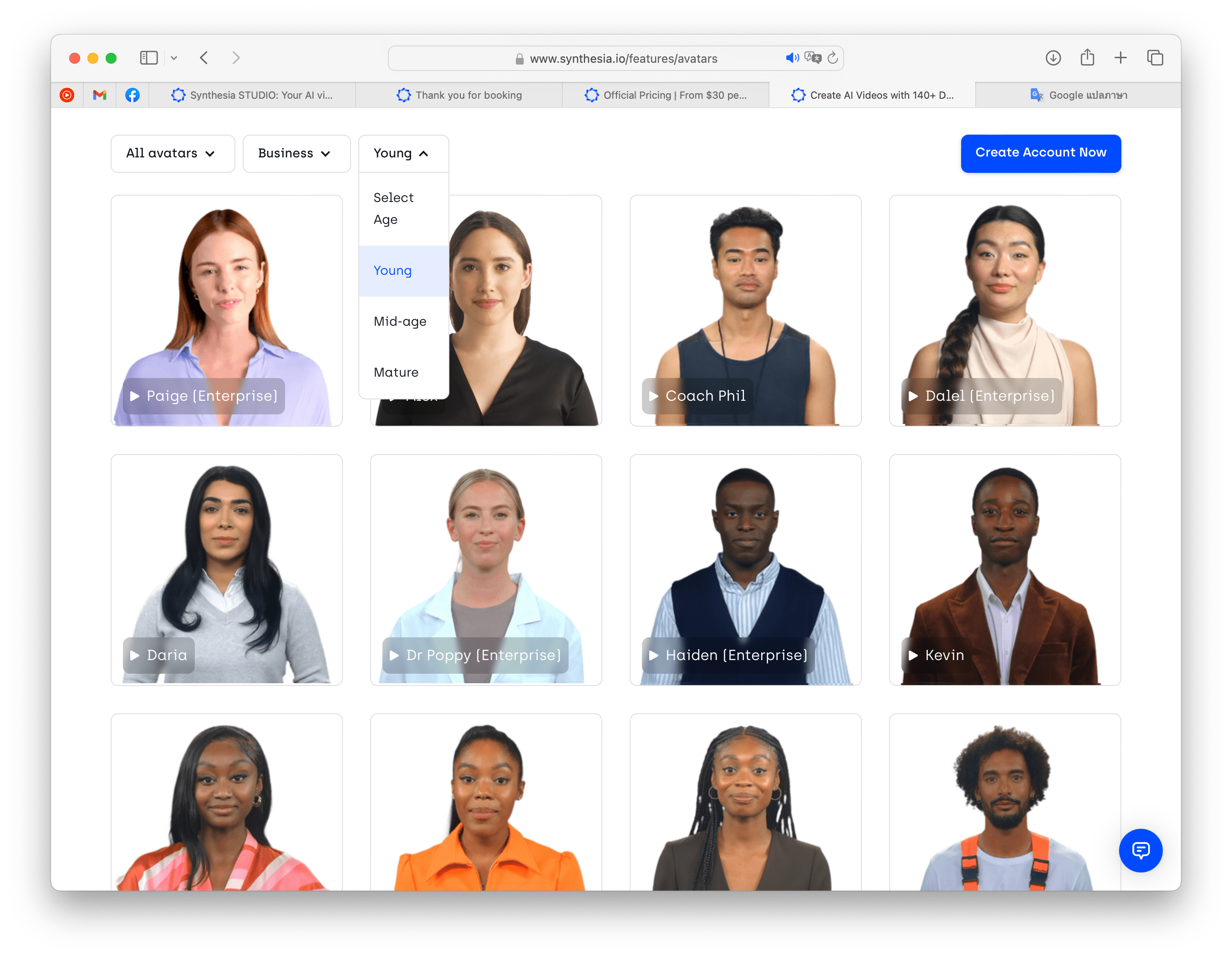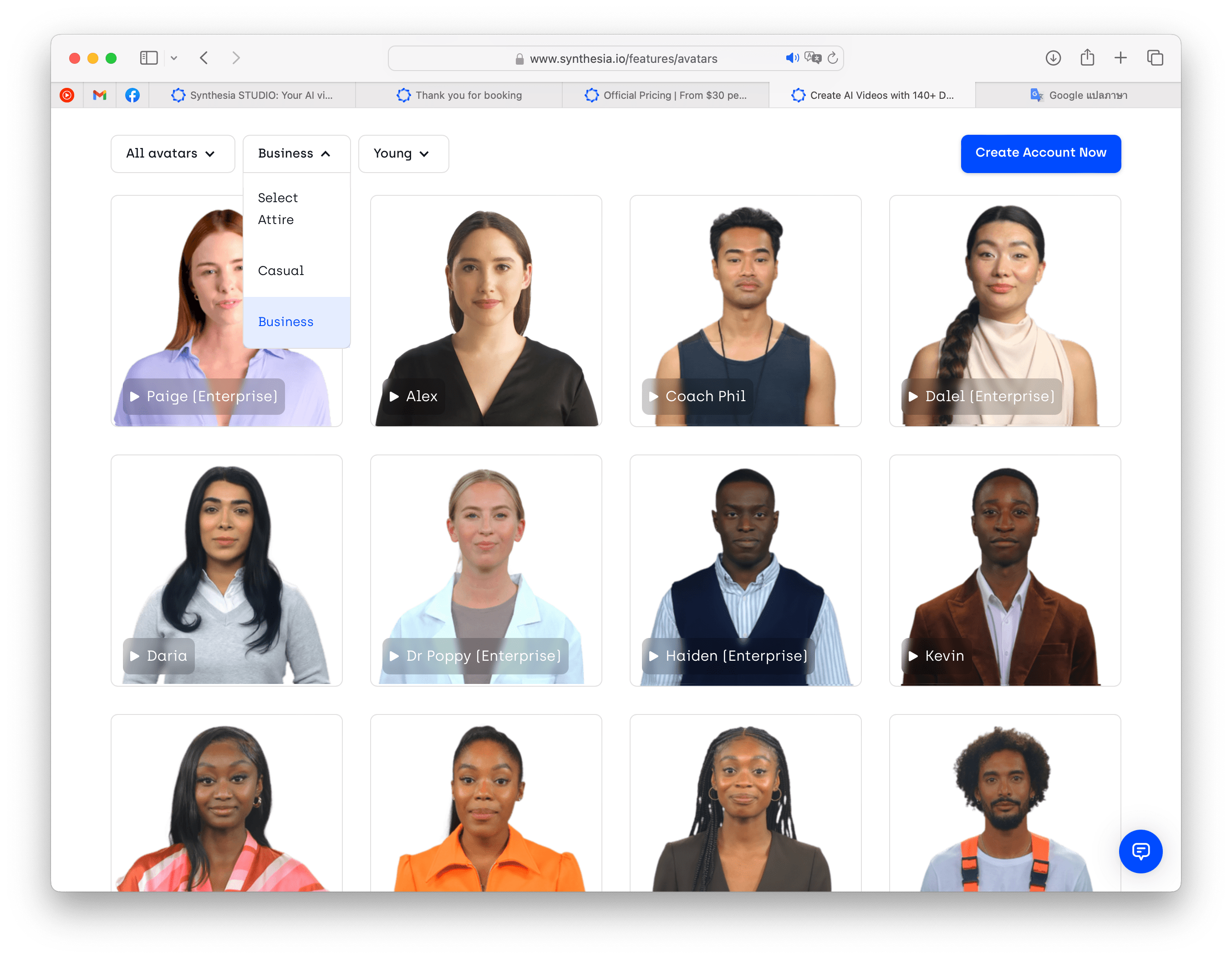สำหรับ Avatars ของเว็บไซต์นี้สามารถเลือกลักษณะการแต่งกาย รวมถึงช่วงอายุของผู้นำเสนอได้