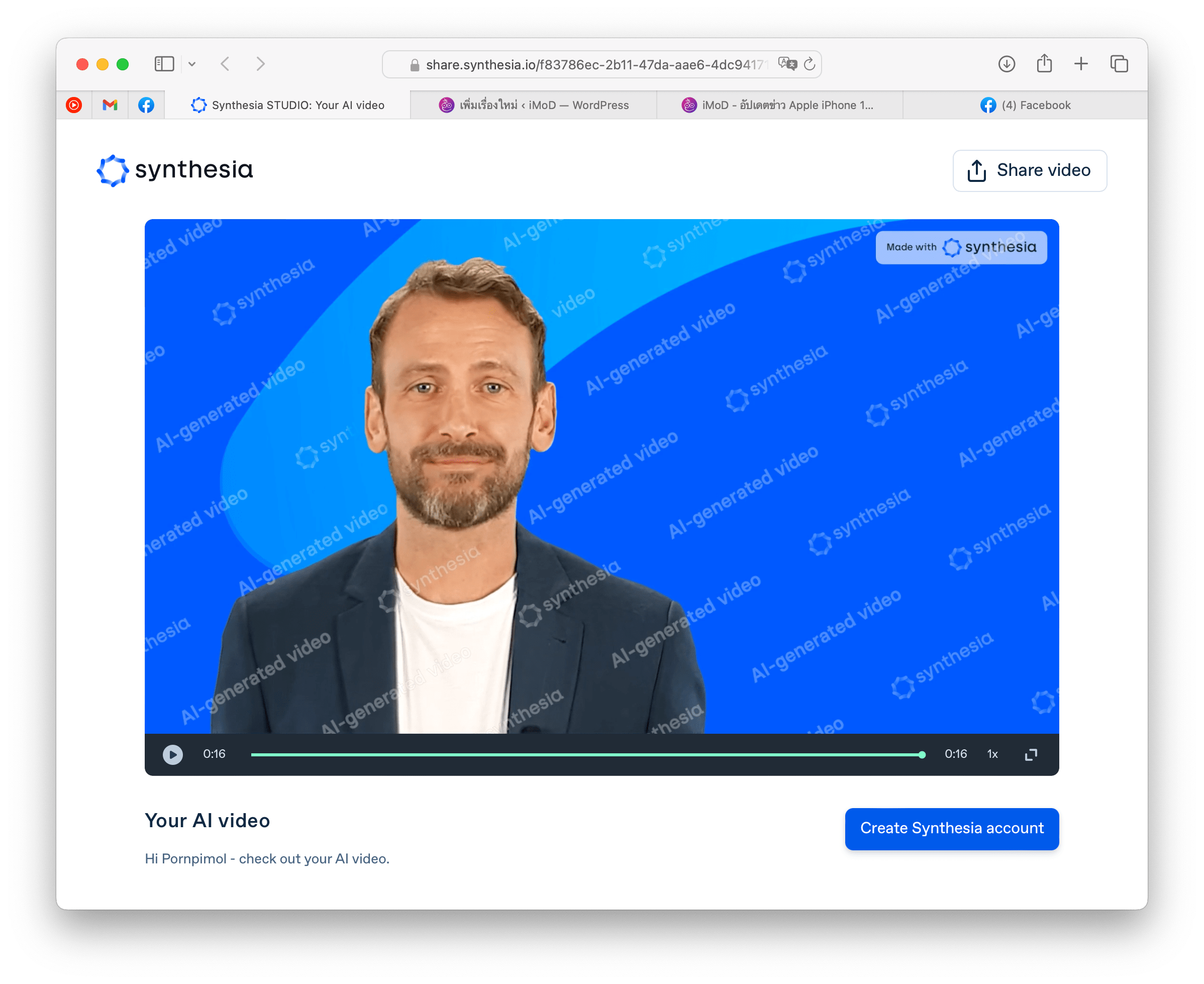 สร้างวิดีโอนำเสนอด้วย Synthesia.io