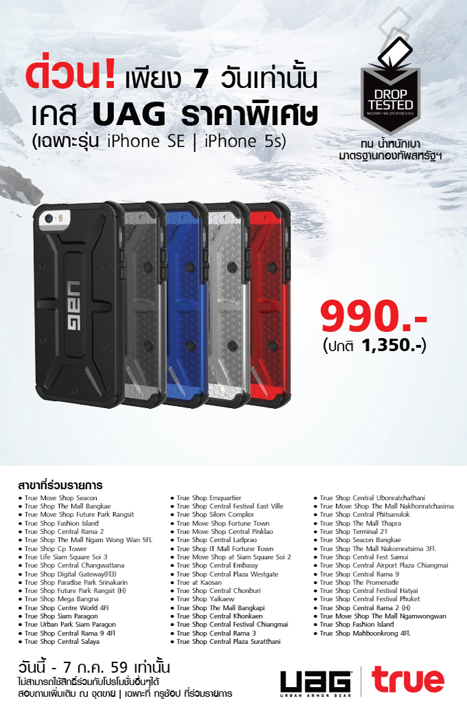ชี้เป้าอุปกรณ์เสริมวันนี้สำหรับ iPhone SE, iPhone 5s, iPhone 5 ที่ต้องการเคสปกป้องแบบแข็งแรงทนถึกอย่าง UAG สุดยอดเคสกันกระแทกวันนี้ มีโปรใหม่จากทางทรูช็อปขนมาลดราคากัน ราคาเพียง 990 บาทเท่า จากปกติ 1,350 บาท