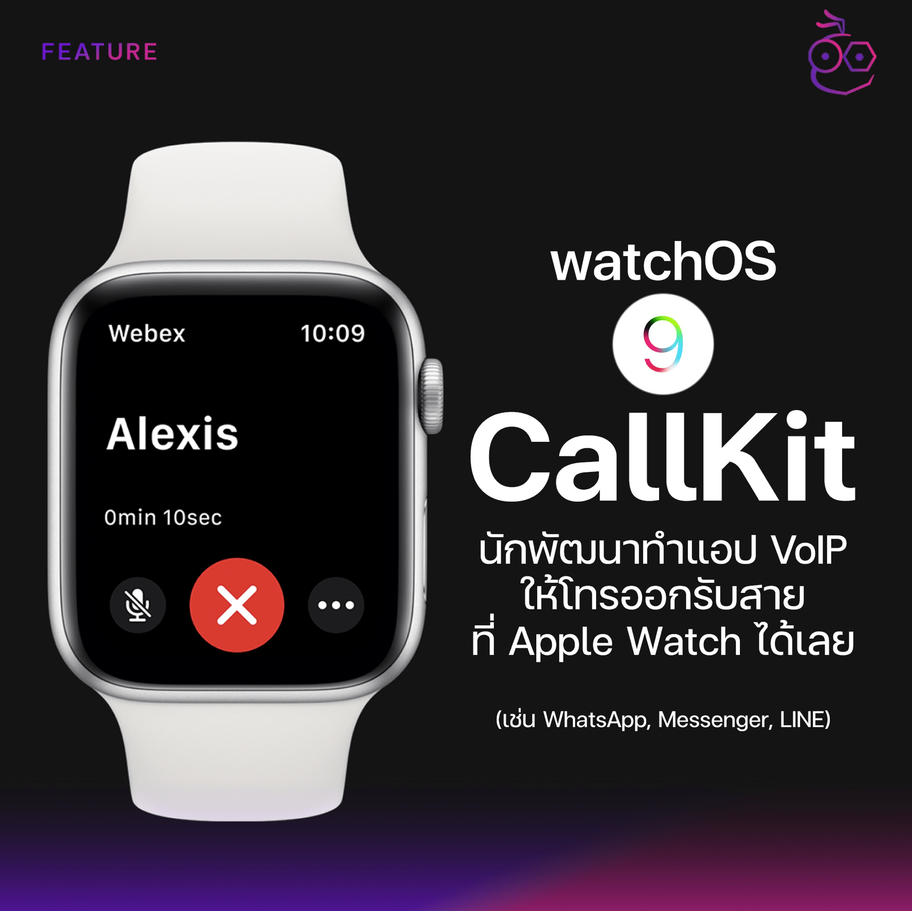 เช่น CallKit บน watchOS ที่นักพัฒนาไม่ว่าจะเป็นจากทาง WhatsApp, Massenfer, Line ทำแอปการโทรออกรับสาย จาก Apple Watch ได้ทันที