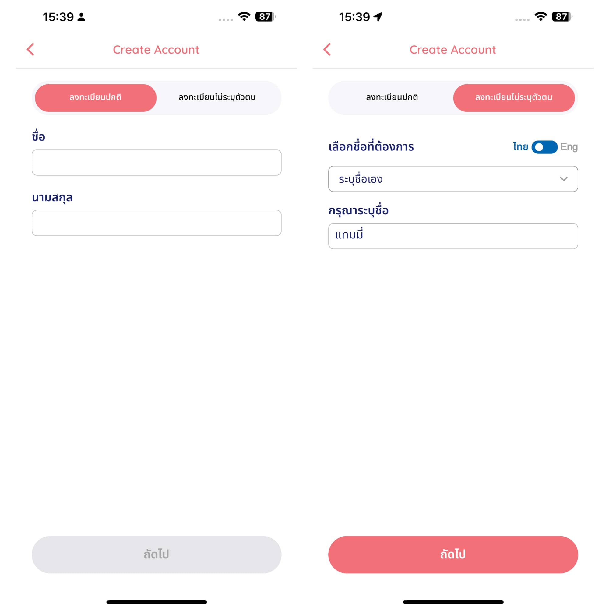 พอเราเข้ามาตัวแอปก็จะให้สมัครสมาชิกด้วยเบอร์โทรก่อน จากนั้นตัวแอปจะให้เราเลือกว่าอยากจะลงทะเบียนแบบปกติหรือแบบไม่ระบุตัวตน