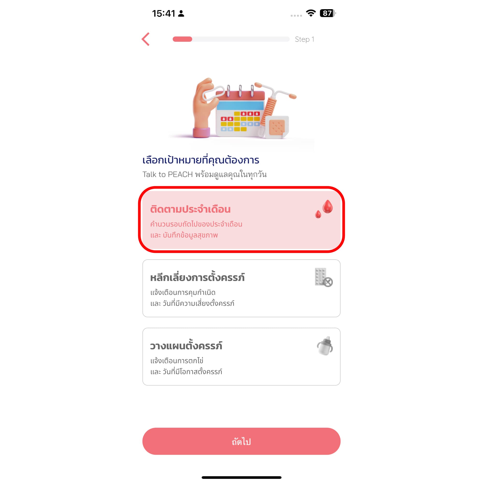ถัดมาให้เลือกเป้าหมายก็คือ “ติดตามประจำเดือน”