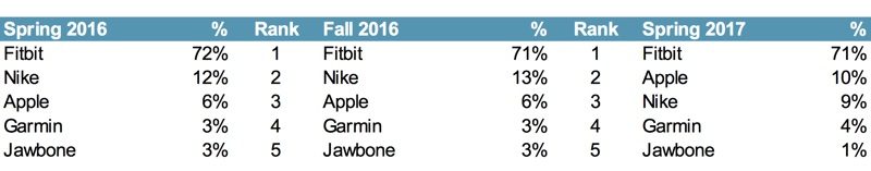 ในกลุ่มวางการนาฬิกาออกกำลัง Apple Watch เป็นรองเพียงแค่ Fitbit แต่ถึงอย่างไรเปอร์เซ็นต์ก็ยังห่างกันสุดขั้ว และยิ่งน้อยลงไปอีกหากเทียบกับแบรนด์กอย่าง Nike, Garmin หรือ Jawbone