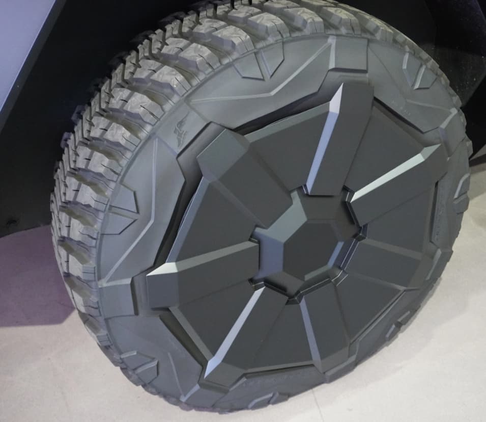 จุดที่ให้ความสนใจกันมากก็คือ ที่ครอบล้อแบบจานครอบล้อลู่ลมหายไป กลายเป็นล้อแม็กคล้ายล้อแม็กรถทั่วไป ซึ่งลักษณะตัวแม็ก Cybertruck ต้นแบบในวิดีโอนั้นจะคล้ายล้อแม็กของ Tesla Model 3