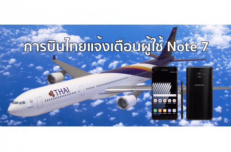 บริษัท การบินไทย จำกัด (มหาชน) ประกาศแจ้งผู้โดยสารห้ามเปิดใช้งานซัมซุง รุ่น Galaxy Note 7 บนเครื่องบินและห้ามโหลดไว้ใต้ท้องเครื่องบิน