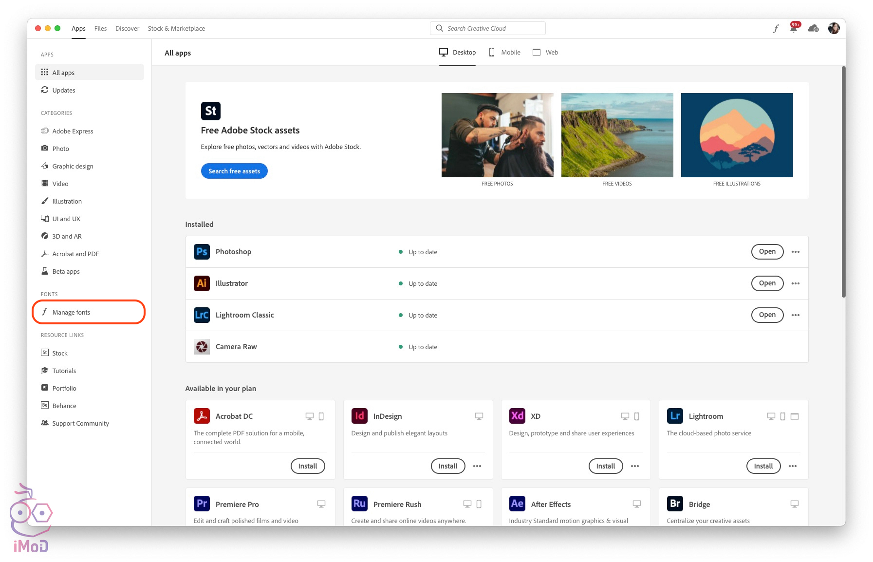 หลังจากที่เราซื้อ Adobe All Apps เรียบร้อยแล้ว ก็ดาวน์โหลดแอป Adobe Creative Cloud มาติดตั้งไว้ในเครื่อง เพื่อใช้ในการจัดการฟอนต์