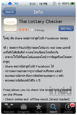 เกาะติดสถานะการณ์เด่นของต้นและกลางของทุกๆเดือนกับ เทศกาลวันหวยออก สำหรับแฟนๆไอโฟนเราก็มีแอปฯมาแนะนำสำหรับเป็นตัวช่วยให้เราตรวจหวยได้แบบง่ายๆแลอัปเดตทันเหตุการณ์ครับ