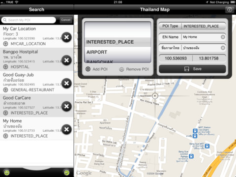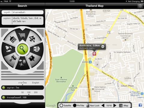 Thai Navi (HD for iPad) is application to search interested locations in Thailand such as tourist attraction, hotel, resort, restaurant, Thailand shopping center and etc.