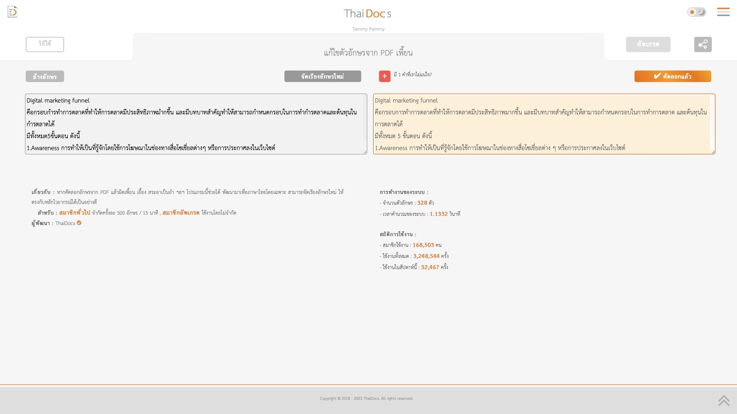 เว็บ ThaiDocs คัดลอกข้อความจาก PDF ตัวอักษรไม่หาย ไม่เพี้ยน!