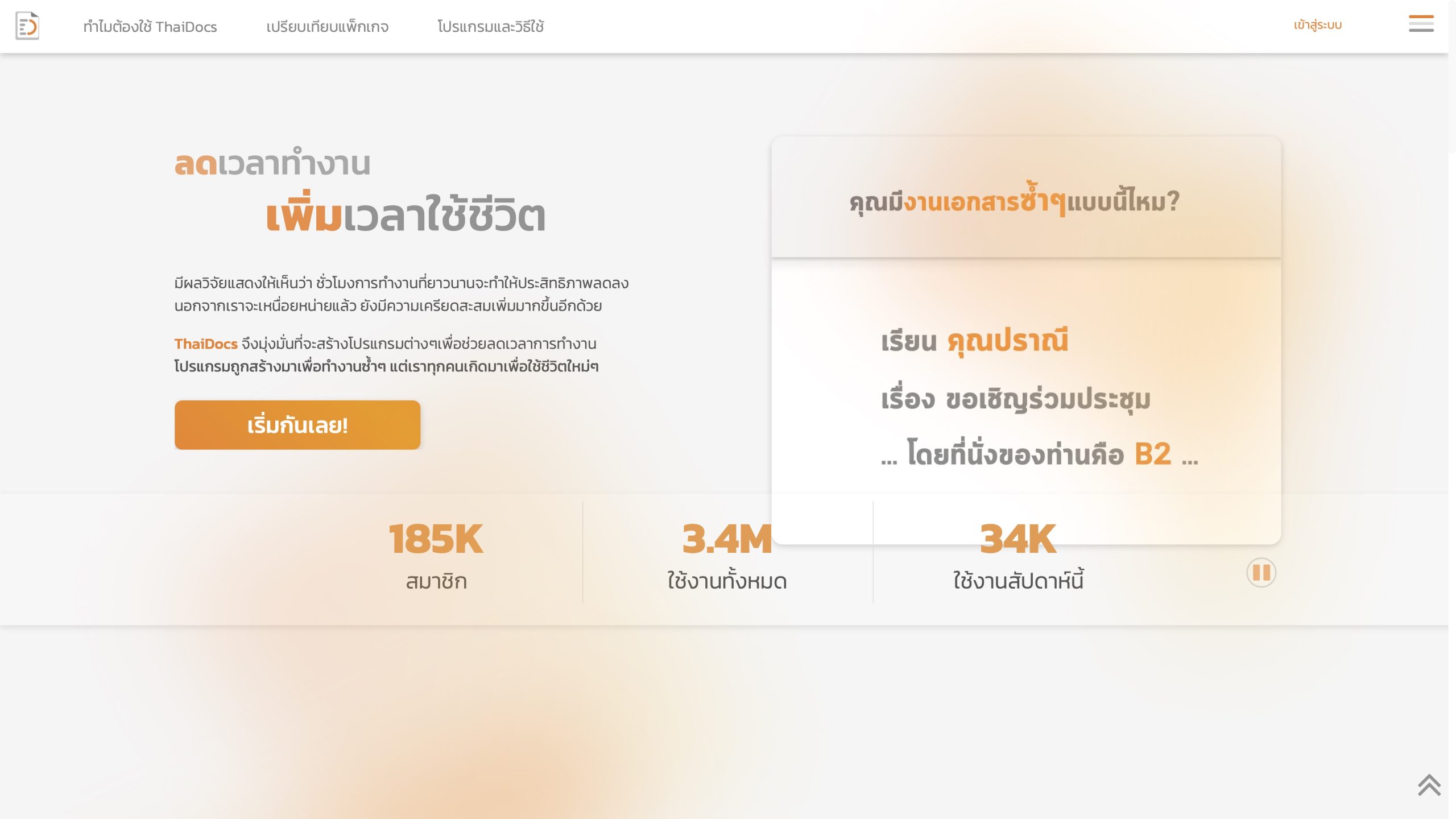 มาที่หน้าเว็บ ThaiDocs แล้วกด “เริ่มกันเลย” เพื่อไปใช้งานเว็บก่อน ก่อนใช้งานอย่าลืมสมัครแอคเคาท์ก่อนด้วยนะ