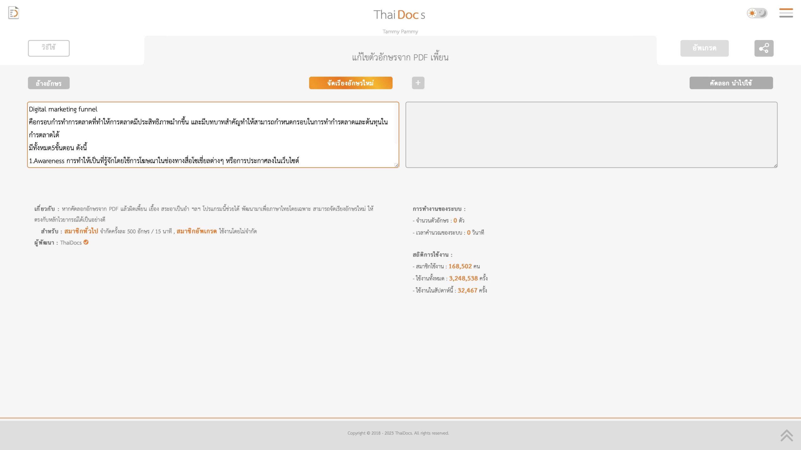เพื่อน ๆ เคยมั้ยคัดลอกข้อความจากไฟล์ PDF แล้ว ตัวอักษรไม่ครบ ตกหล่น หรือเพี้ยน เว็บ ThaiDocs ช่วยคุณได้ เพียงแค่คัดลอกข้อความจากไฟล์ PDF มาลงเว็บตัวอักษรก็จะไม่เพี้ยนแล้ว