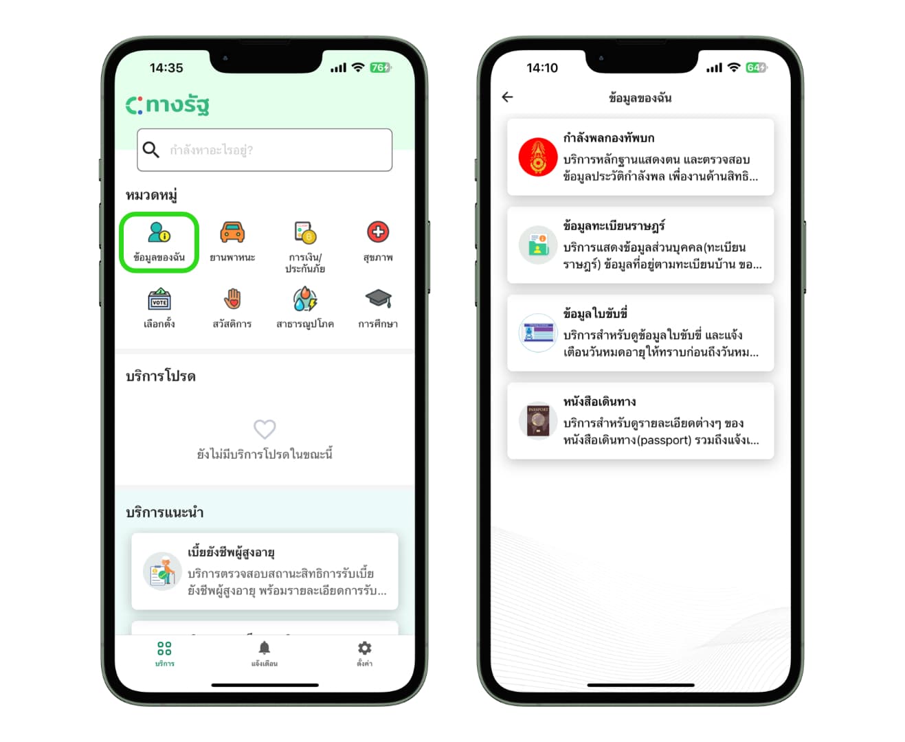 แอป “ทางรัฐ” แอปรวมทุกบริการของหน่วยงานราชการไทย ดูข้อมูลบัตรประชาชน ใบขับขี่ หนังสือเดินทางตรวจสอบเครดิตบูโร ค่าน้ำ ค่าไฟ ข้อมูลผู้ประกันตน เงินอุดหนุนเด็กแรกเกิด เช็กใบสั่งจราจร เช็คสถานะ กยศ. และอื่น ๆ รวมกว่า 80 บริการ