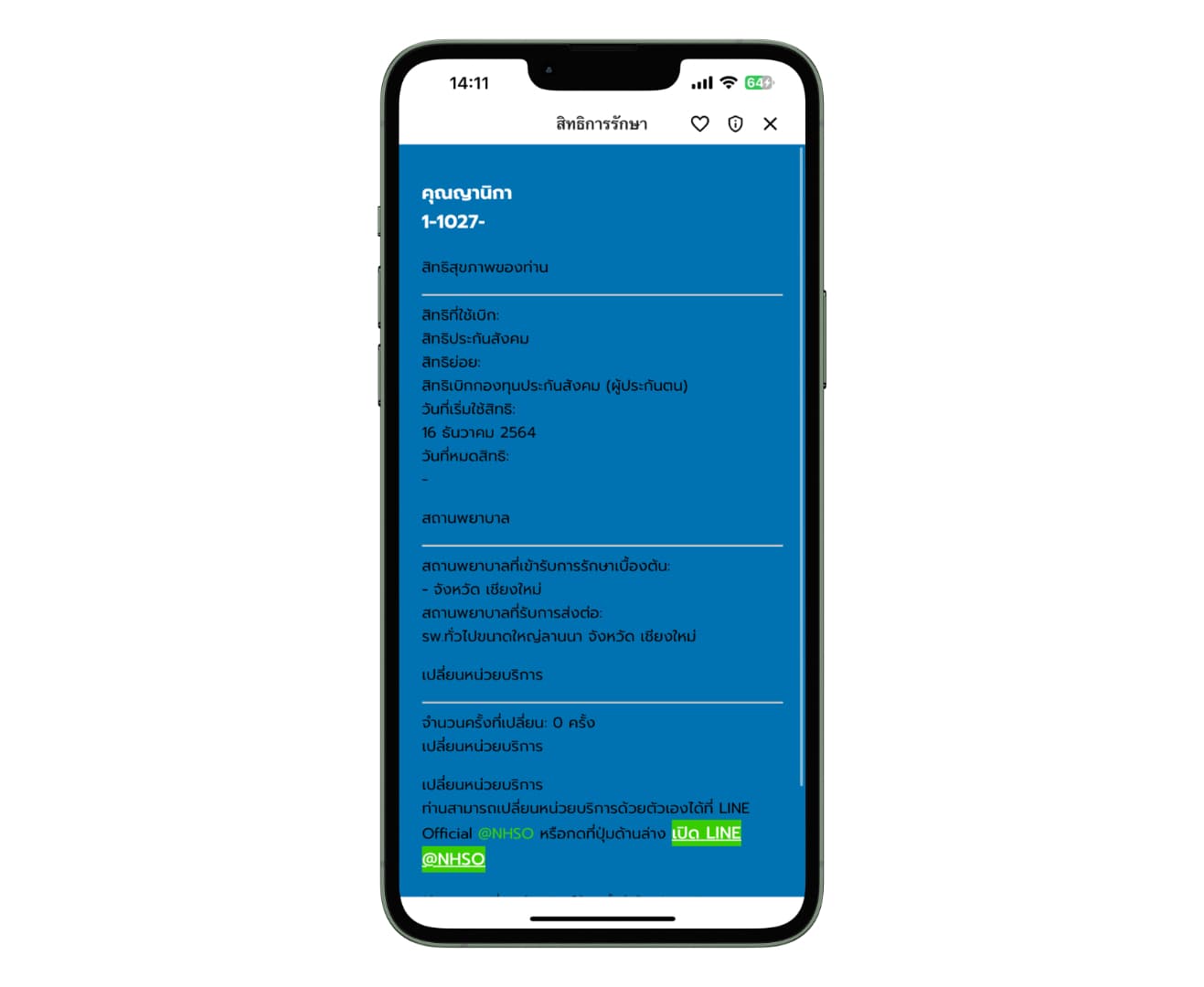 โดยในเมนูนี้จะมีรายละเอียดสิทธิการรักษาของบริการด้านสุขภาพของเราบอกไว้ชัดเจน ว่าเรามีสิทธิอะไรที่ใช้ได้บ้างในตอนที่เราเจ็บป่วย