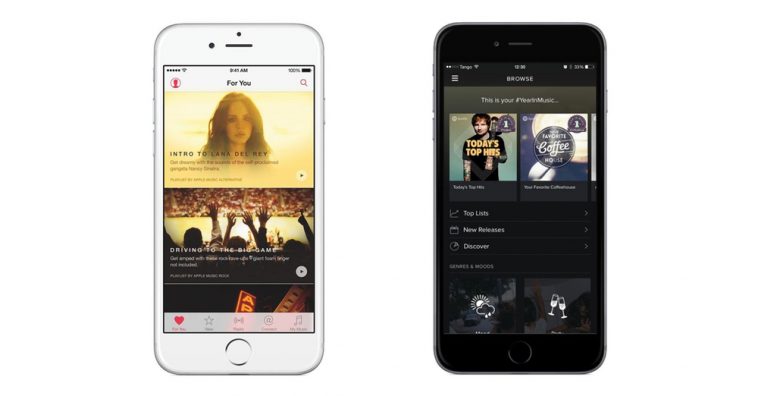 สำหรับคนที่ชื่นชอบบริการสตรีมเพลงแต่ยังตัดสินใจไม่ได้ว่าจะเลือกบริการของอะไรดี ตอนนี้มีสองบริการยักษ์ใหญ่ที่กำลังขึ้นเป็นที่เปรียบเทียบอยู่ระหว่าง Apple Music และ Spotify ซึ่งเชื่อว่าผู้ฟังที่ชื่นชอบเพลงอินเตอร์มากกว่าเพลงไทยก็คงจะเล็งสองบริการนี้อยู่ วันนี้ผมจะพาไปดูความแตกต่างของ Apple Music และ Spotify เพื่อเป็นตัวช่วยในการตัดสินใจเพิ่มครับ