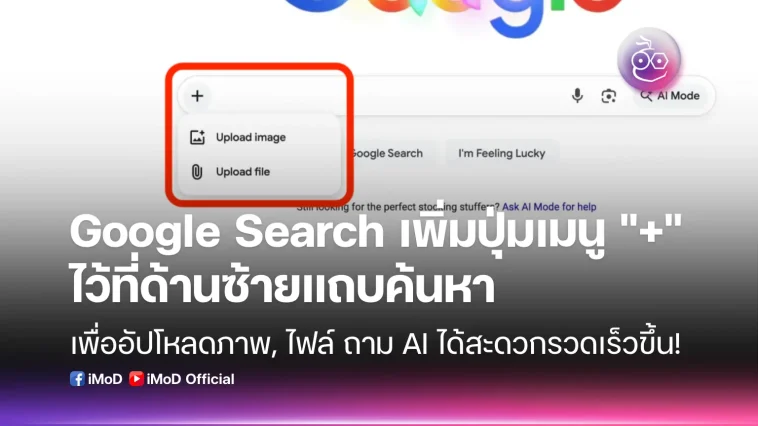 Google Search มีการเปลี่ยนแปลงเล็กน้อย เพิ่มปุ่มเมนู “+” เพื่อช่วยให้ผู้ใช้สามารถอัปโหลดภาพและไฟล์เพื่อใช้กับโหมด AI ได้สะดวกยิ่งขึ้น