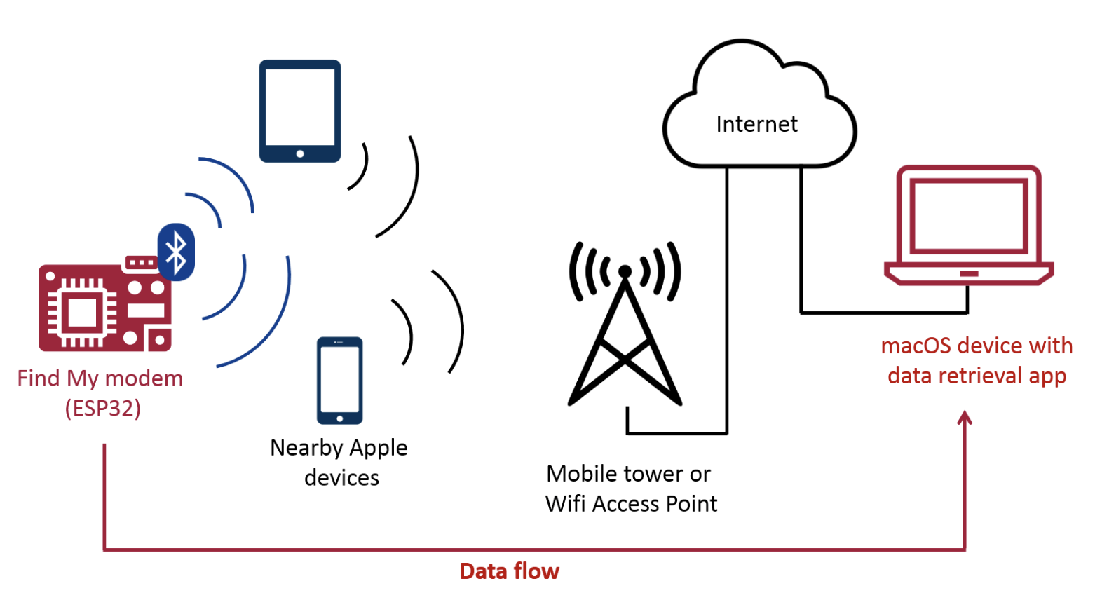 การแฮ็กนี้คล้าย ๆ กับการจำลองการส่งข้อมูลสัญญาณของ Find My จากเดิมที่จะเข้ารหัสตำแหน่ง GPS เพื่อส่งตำแหน่งที่ตั้ง แต่ในเคสนี้จะใช้การส่งข้อความแทน ในการสาธิตนี้เขาได้ส่งความสั้น ๆ ผ่านเครือข่าย Find My ไปยัง Mac ที่บ้านของเขา